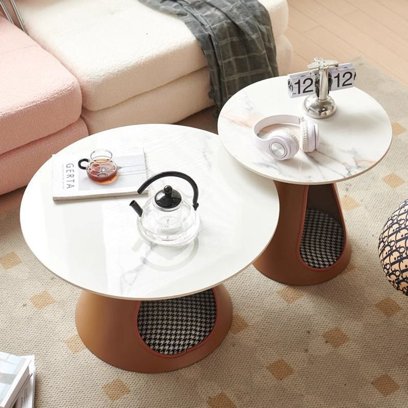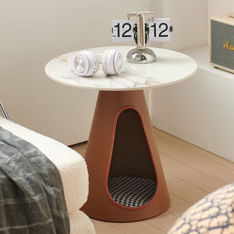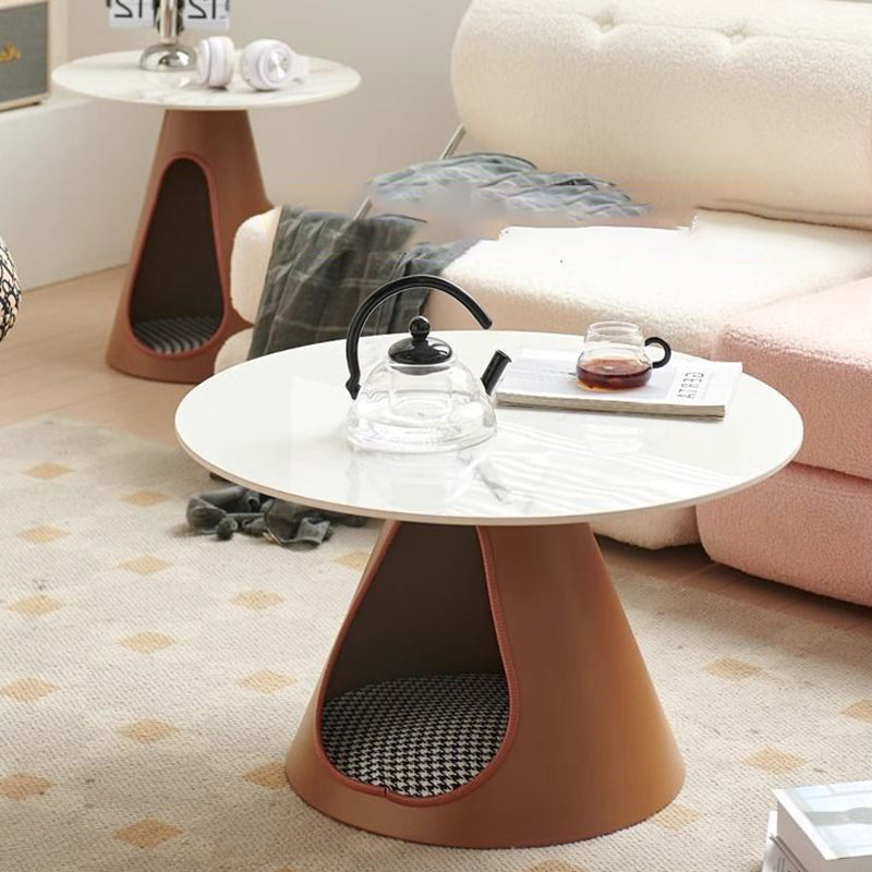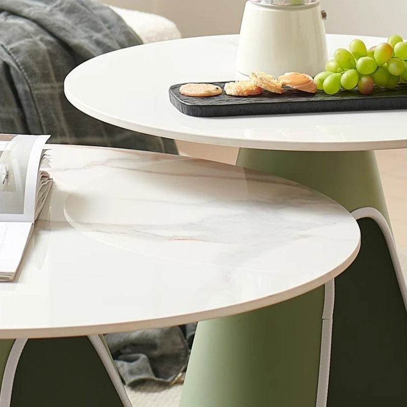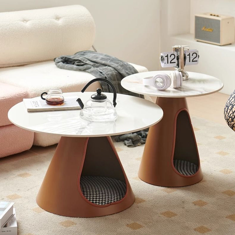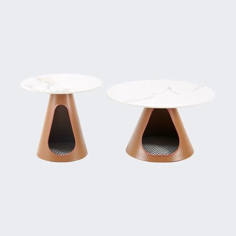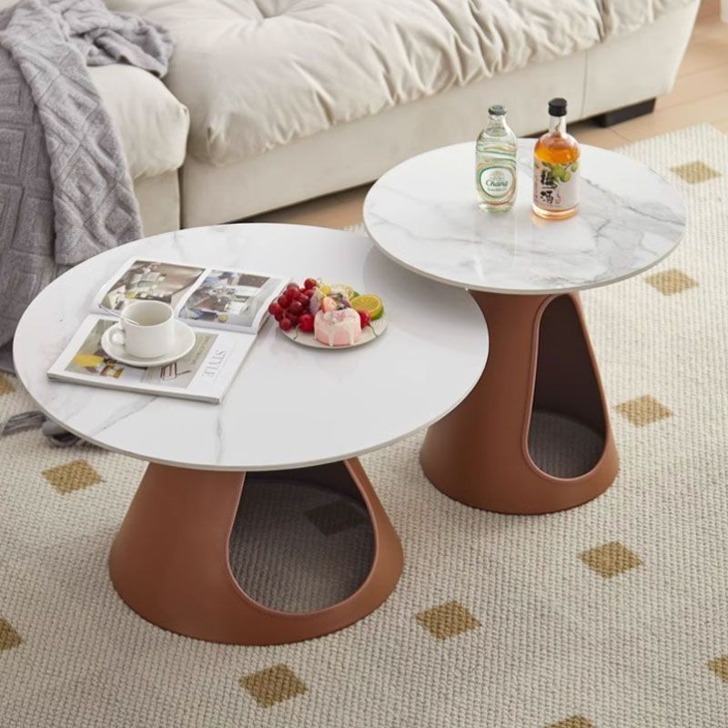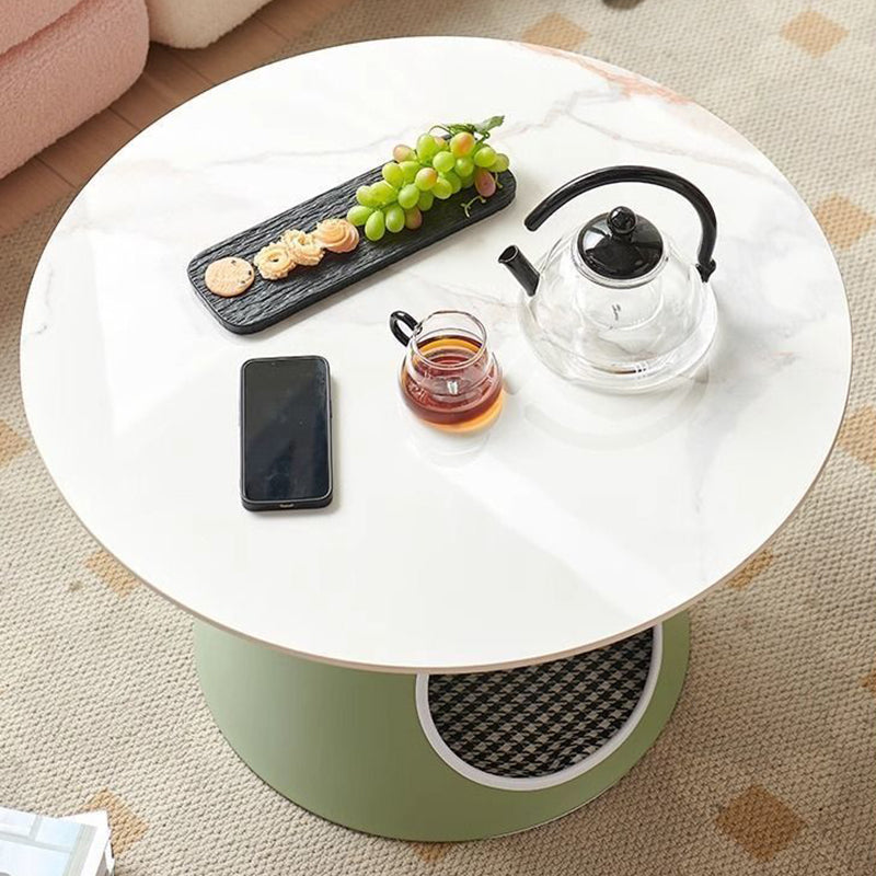 Blending modern minimalist with practical elegance, this round coffee table features a durable stone tabletop and a robust iron base, providing efficient 2-tier storage for everyday essentials. Available in distinctive brown and green tones, its easy-to-clean surface and sturdy construction ensure long-lasting utility, making it a stylish and functional centerpiece tailored for contemporary living rooms.