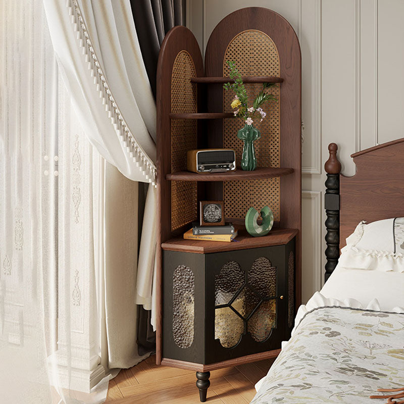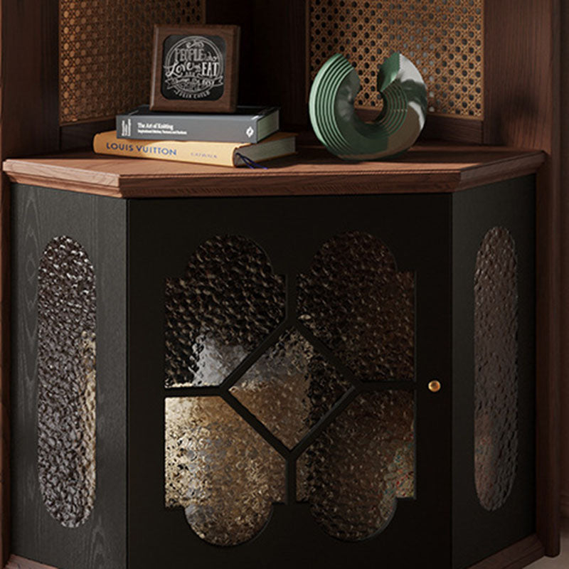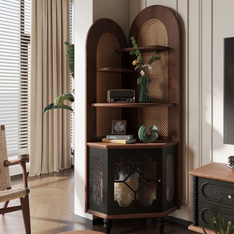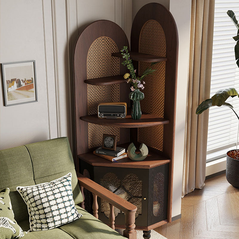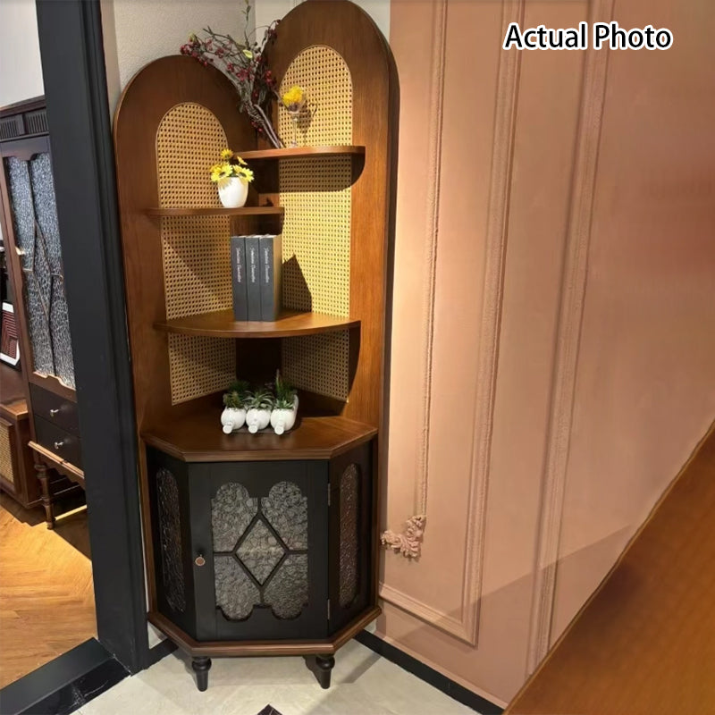 Designed for the sophisticated collector, this unit offers a "hybrid storage solution" with its large-capacity 5-tier layout. The four upper open-display tiers provide an airy stage for fine china, rare books, or curated decor, while the lower closed cabinet offers discreet, dust-free storage for household essentials. The integration of glass elements adds a layer of depth and light reflection, enhancing the "Antique French" aesthetic. This is the ultimate choice for North American homeowners seeking vintage solid oak corner cabinets, French Provincial display cases, traditional red oak furniture, and luxury corner hutches.