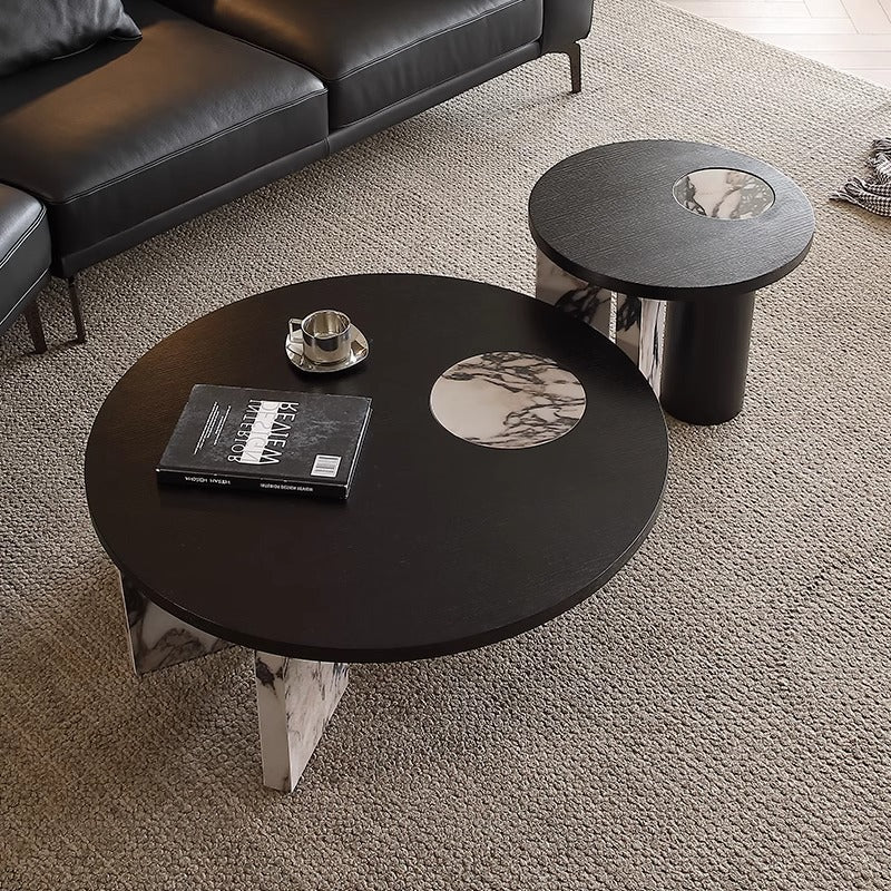 This Traditional French coffee table set combines high-strength sintered stone tabletops with a solid wood veneer base, delivering a refined, high-end look ideal for modern living rooms and balconies. Designed with a single-tier surface, it offers excellent heat resistance, scratch resistance, and easy cleaning, finished in a sleek black tone that elevates compact and contemporary interiors
