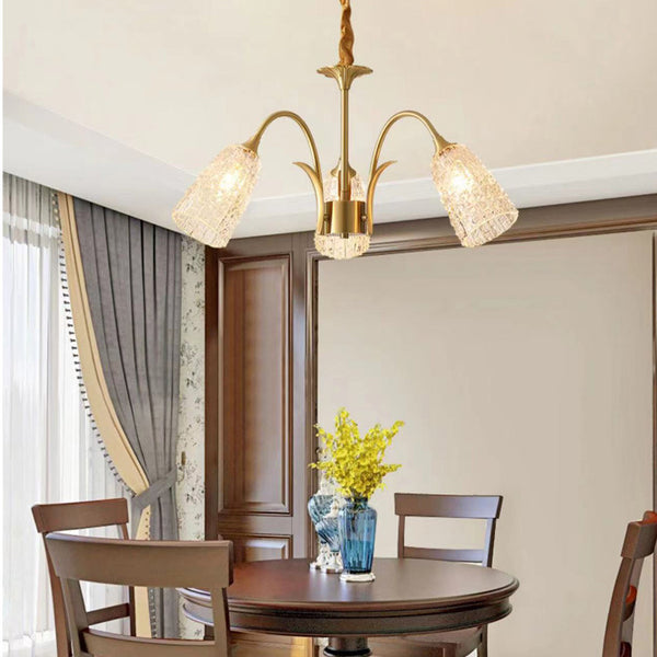 Lustre Rond en Verre Cuivre de Luxe Contemporain 3/5/6/8 Lumières pour Salon