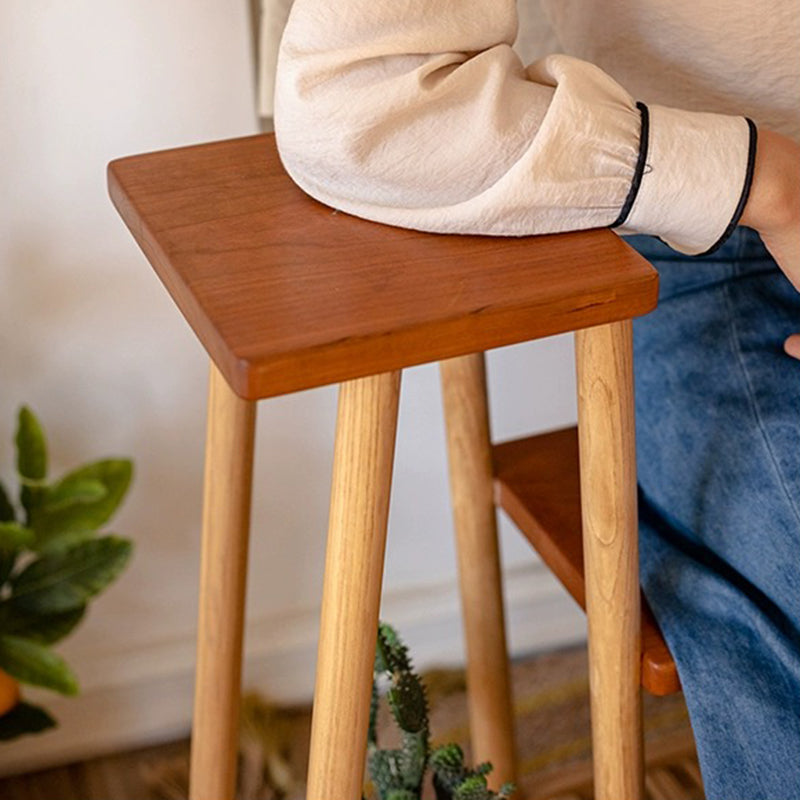 Contemporary Nordic Carbon Steel Solid Wood Rectangular Outdoor Bar Stool Backless For Outdoor