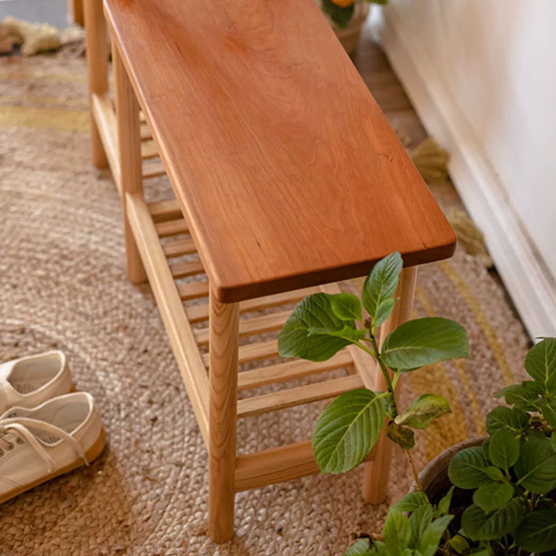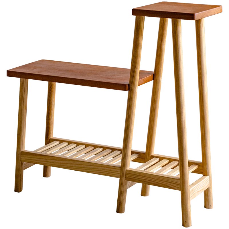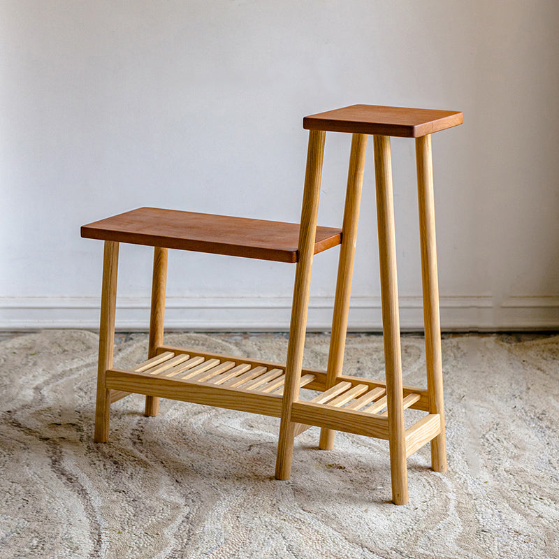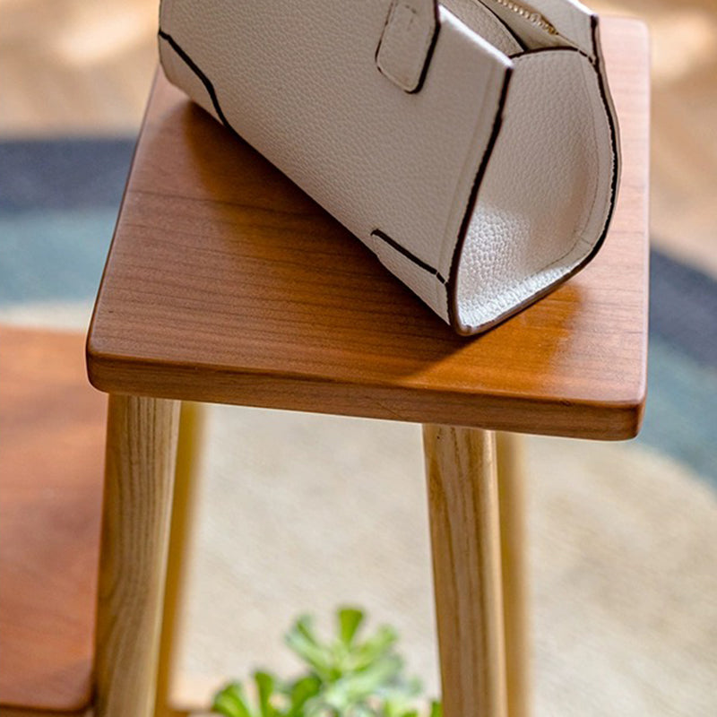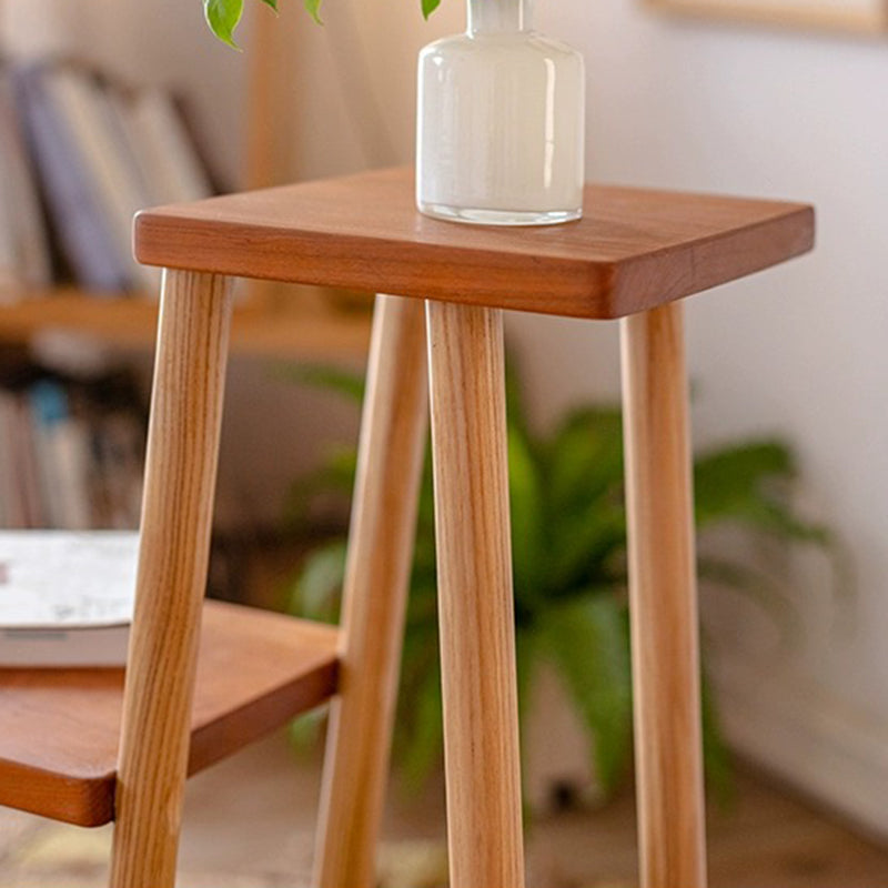 Contemporary Coastal Solid Ash & Cherry Wood Rectangular Storage Shelf 3-Tier For Outdoor Patio