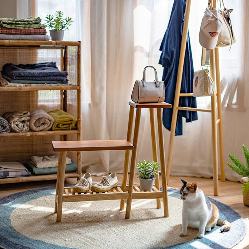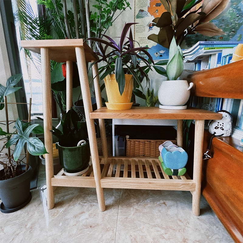 This 3-tier solid wood storage rack features a natural wood finish, strong load-bearing construction, and convenient open shelves for easy access. Its rectangular design and durable ash and cherry wood make it perfect for gardens, outdoor patios, or coastal-style living spaces. Ideal for plant display, organization, and versatile home storage.