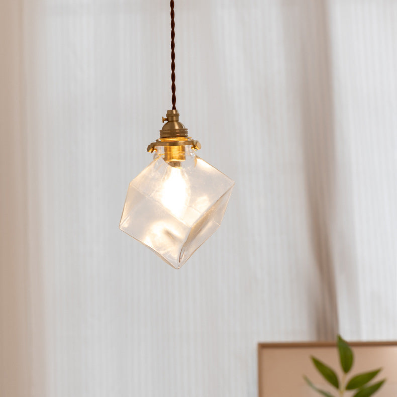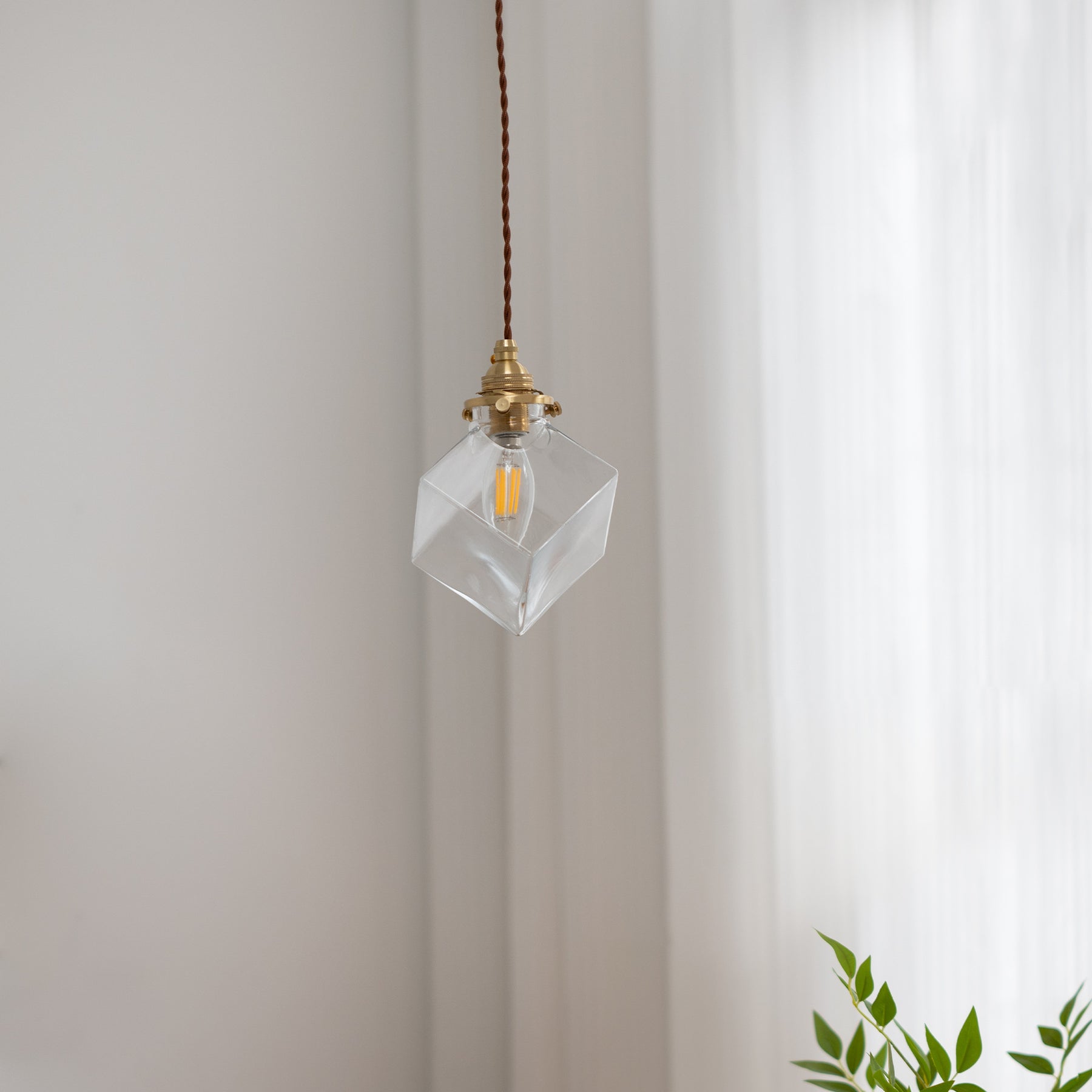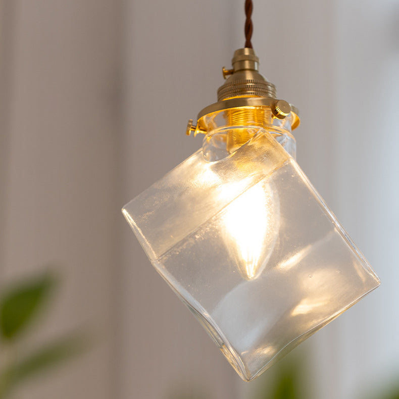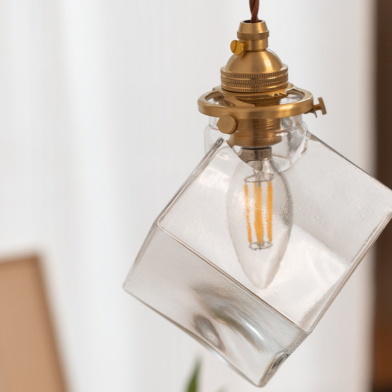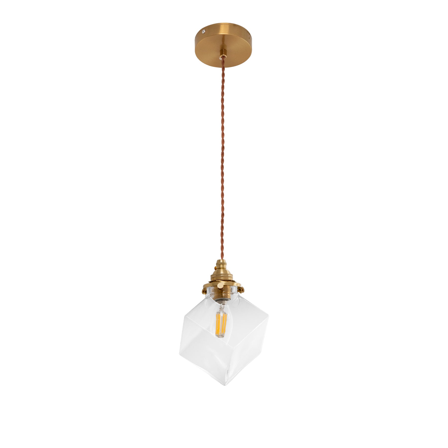 Luminaire suspendu moderne minimaliste carré en métal et verre cuivre à 1 lumière pour le salon