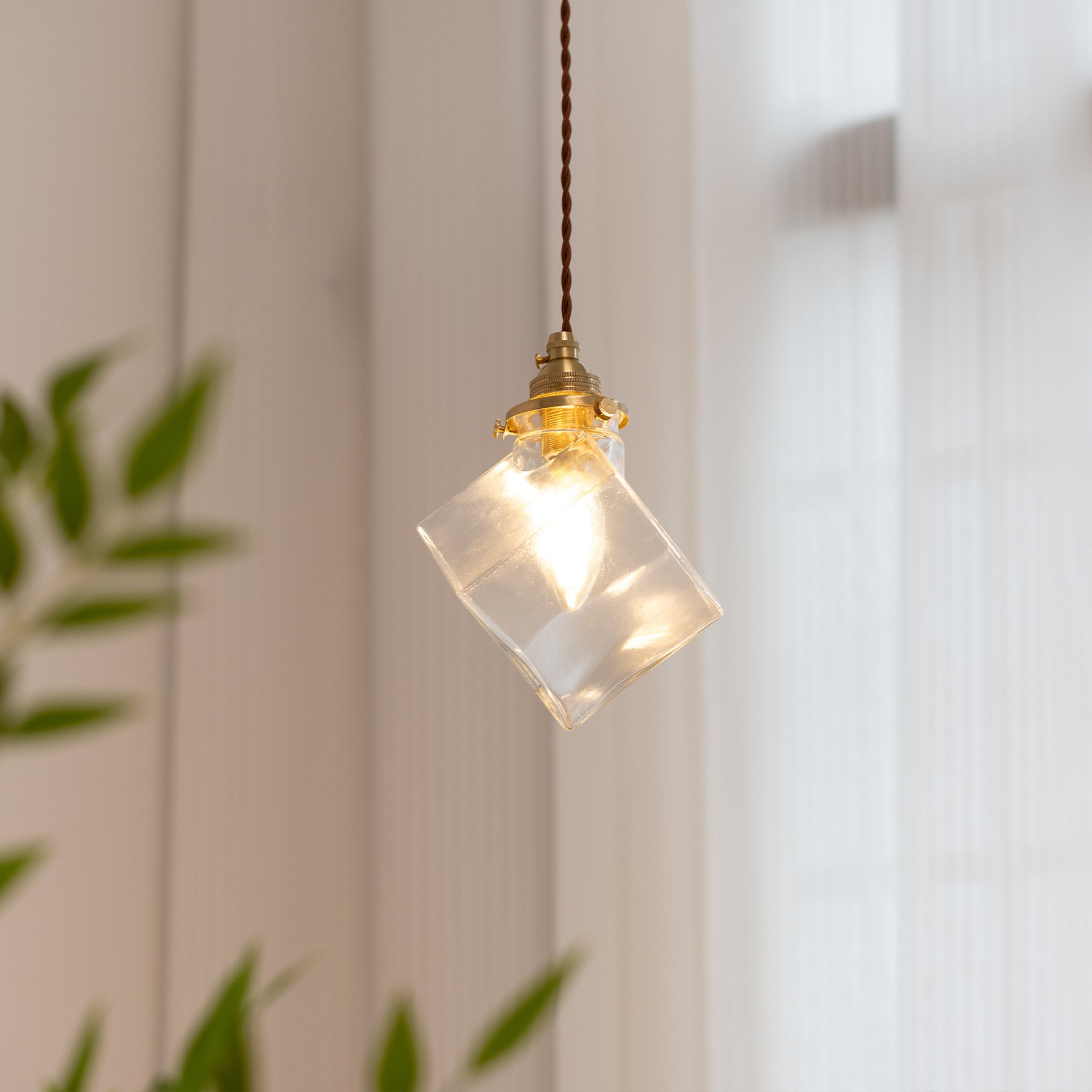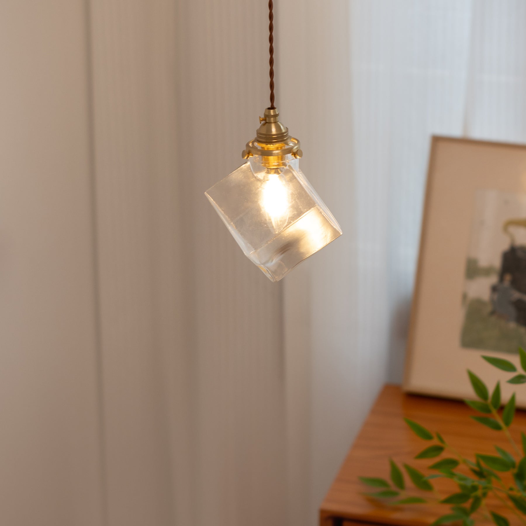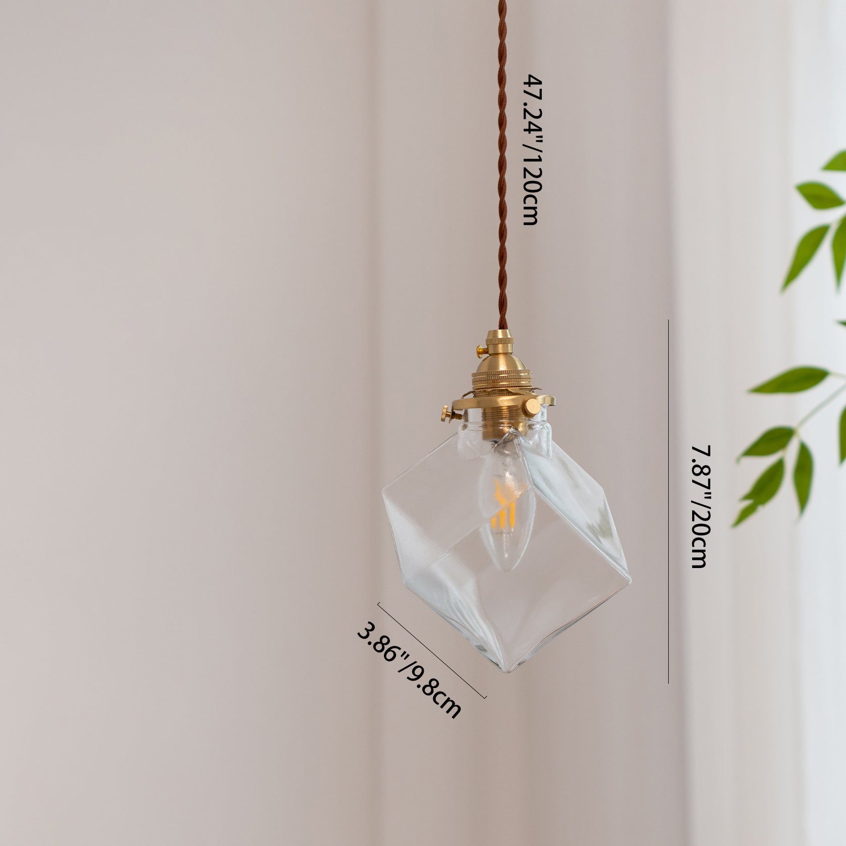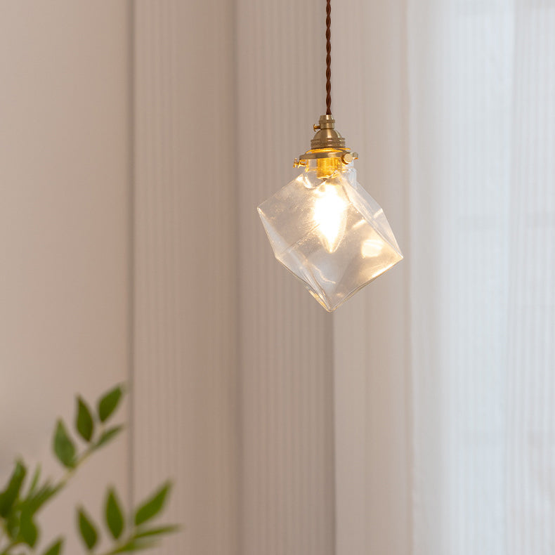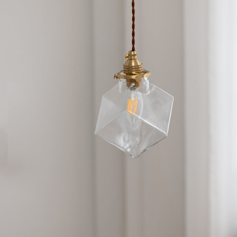 Luminaire suspendu moderne minimaliste carré en métal et verre cuivre à 1 lumière pour le salon
