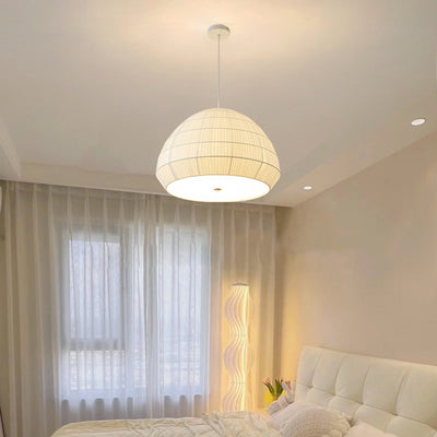 Suspension lumineuse à 1 ampoule en tissu prismatique rond traditionnel japonais pour chambre