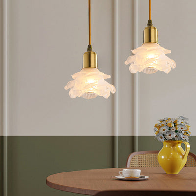 Cylindre Art Déco Moderne Fleur Cadre Complet en Laiton Abat-jour en Céramique 1-Lumière Suspension Luminaire Pour Chambre