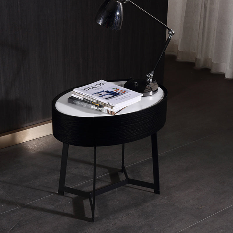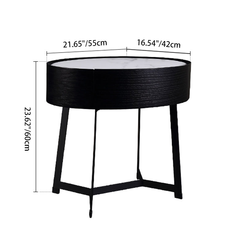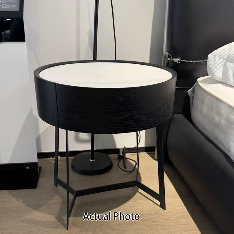 Elevate your bedroom with this contemporary luxury nightstand, uniquely defined by its signature oval base and slender, tall metal legs. The striking contrast between the sleek black lacquered body and a crisp white sintered stone top creates an immediate, clean modern aesthetic. Crafted from E1-grade lacquered board with smoked wood veneer and a durable solid wood drawer, this piece seamlessly combines high-end materials with long-lasting quality. The single drawer provides discreet, organized storage for essentials, while the elevated base ensures effortless cleaning and a sophisticated visually light appearance—making it the perfect accent for modern homes and design-forward interiors.