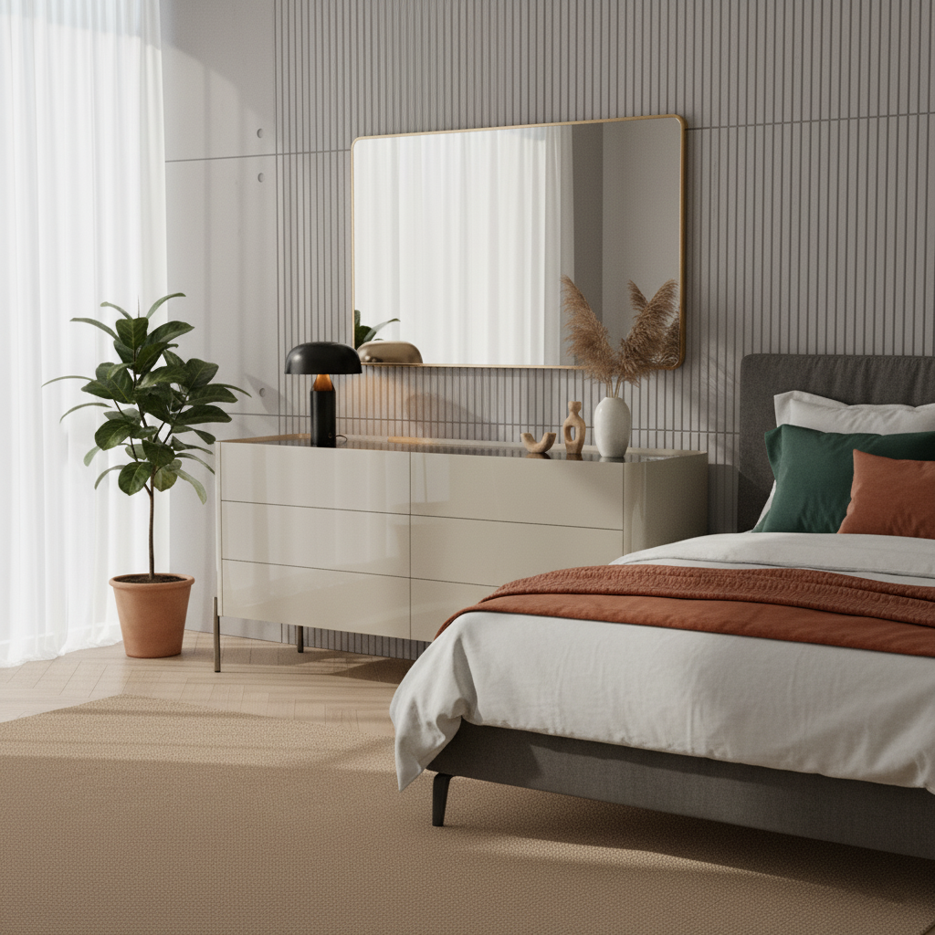“A versatile piece that fits seamlessly into bedrooms, living rooms, entryways, and modern interiors."