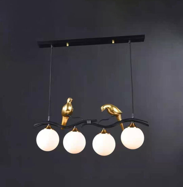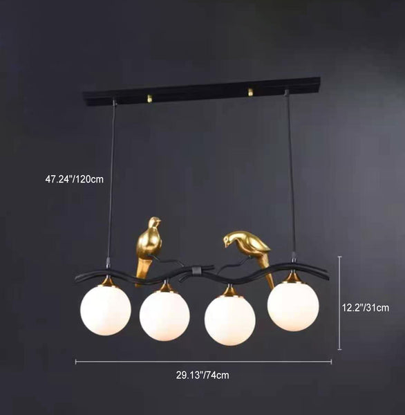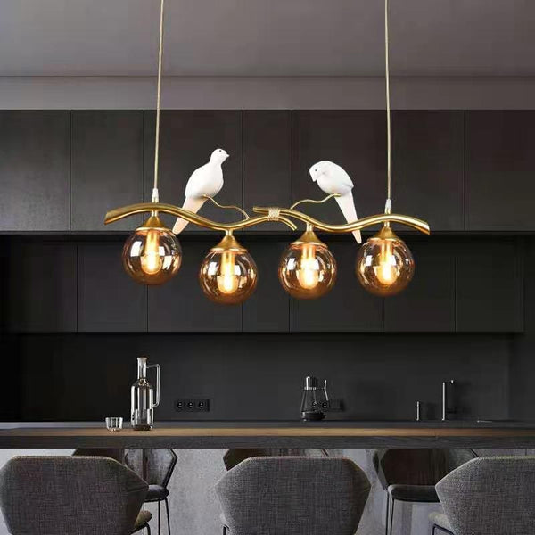 Lustre d'île à 4 lumières avec abat-jour en boule de verre en résine créative contemporaine pour salon