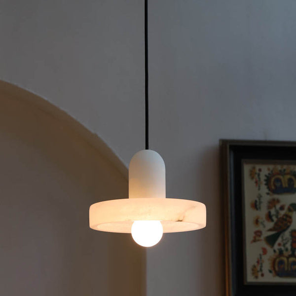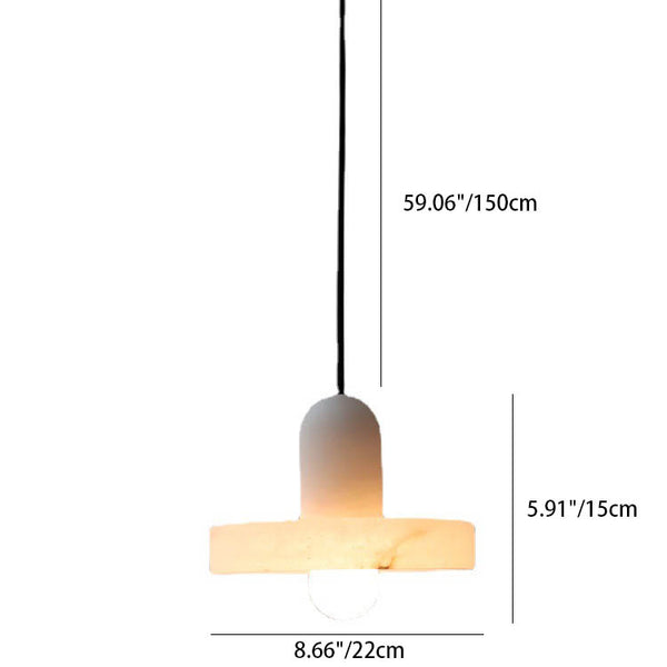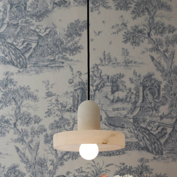 Suspension en laiton à 1 lumière avec abat-jour rond en marbre chinois traditionnel pour salon