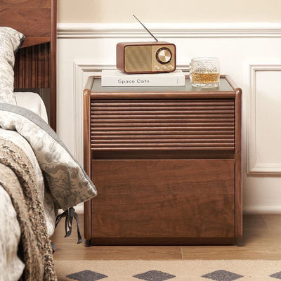 Contemporary Scandinavian Square Cherry Wood Solid Wood Poplar Solid Wood Nightstand 2-Drawer For Bedroom