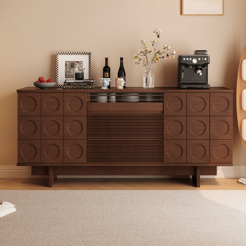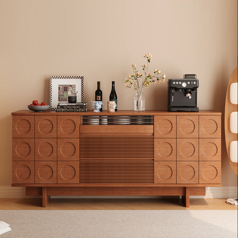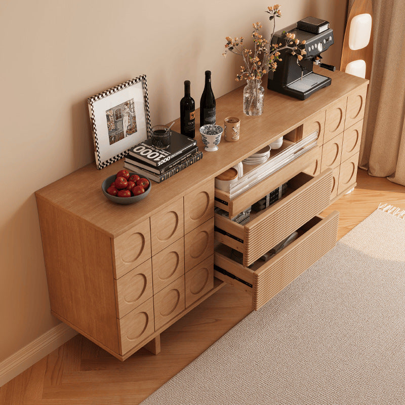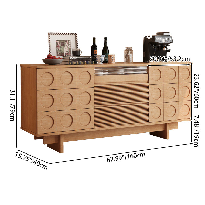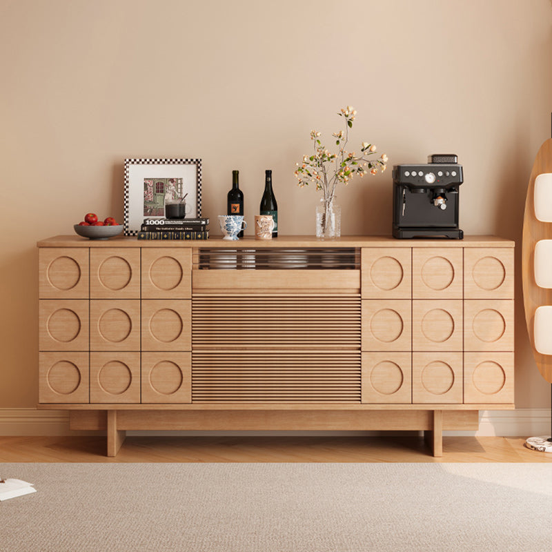 Upgrade your home with this Mid-Century Modern solid wood sideboard, designed with iconic geometric drawer fronts, warm natural wood tones, and generous storage capacity—perfect for dining rooms, living rooms, or a stylish coffee bar setup.