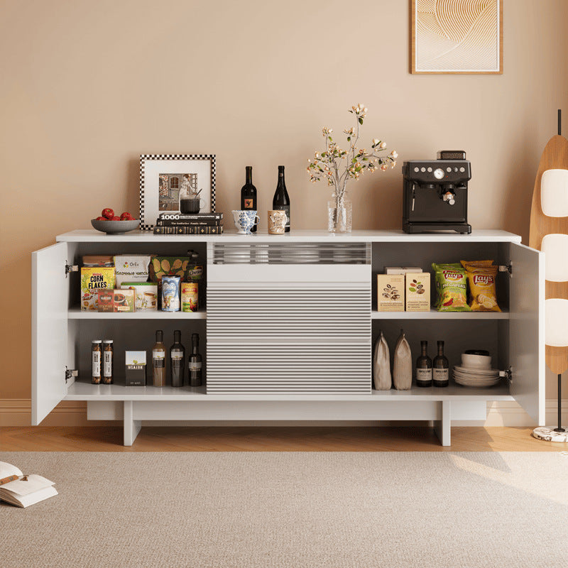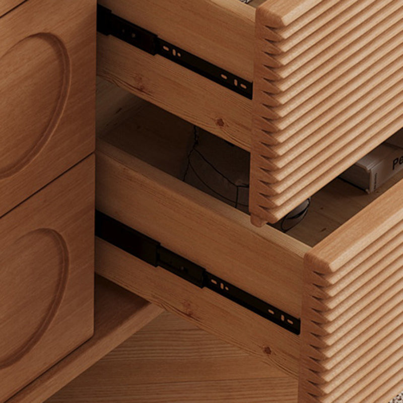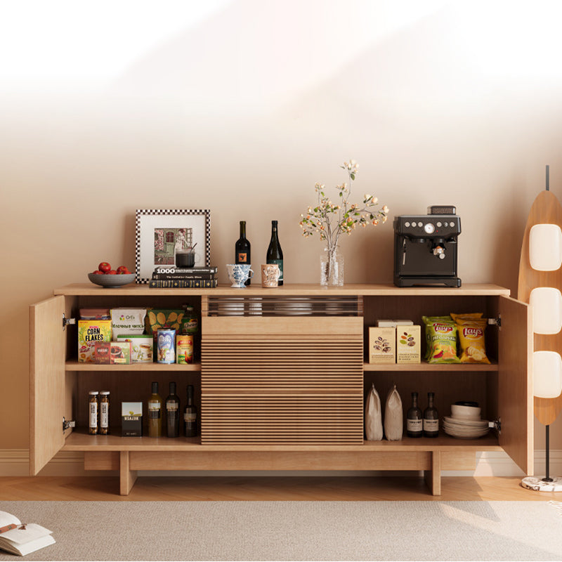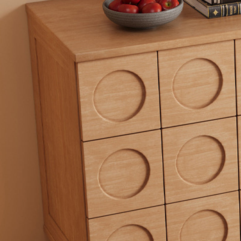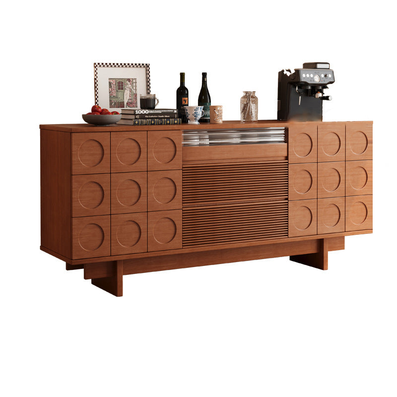 Upgrade your home with this Mid-Century Modern solid wood sideboard, designed with iconic geometric drawer fronts, warm natural wood tones, and generous storage capacity—perfect for dining rooms, living rooms, or a stylish coffee bar setup.