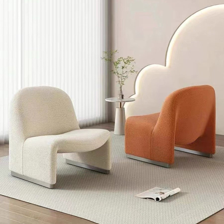 This contemporary Nordic accent armchair is defined by its soft curved silhouette and exceptional ergonomics. Designed for everyday comfort, it features a supportive backrest and a plush, fatigue-reducing seat that invites relaxation. The piece is expertly crafted with a solid wood frame and high-resilience foam for lasting durability. Available in cozy sherpa or breathable cotton-linen fabric, it comes in a vibrant palette of army green, beige, orange, blue, and yellow—a perfect focal point for any modern living room.