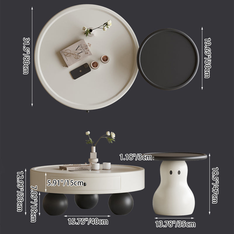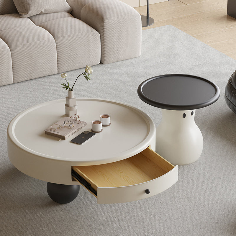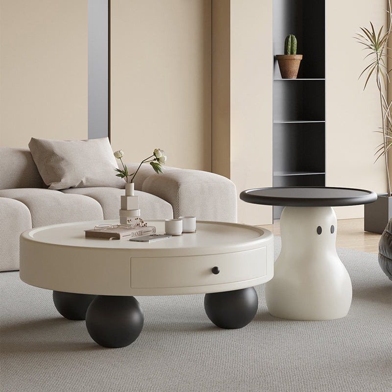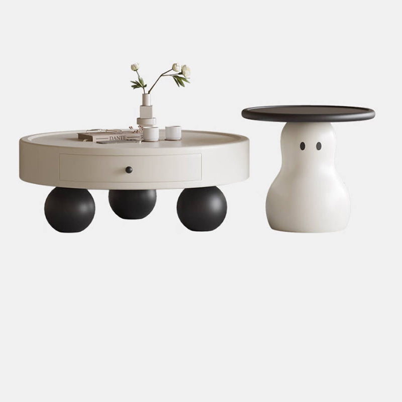 This table is designed for maximum utility, featuring a discreet built-in drawer for hidden storage, making it a truly space-efficient centerpiece for modern living rooms. Its unique, sculptural form adds a refined and creative touch, ideal for those seeking both style and function. Available in sophisticated Black and crisp Cream White, this table is optimized for North American consumers searching for Nordic round coffee tables with storage, snowman inspired side tables, engineered wood fiberglass furniture, and space-efficient modern centerpieces for living rooms.