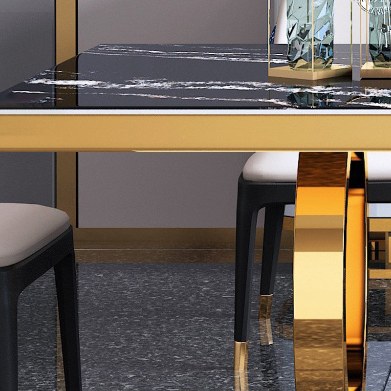 Elevate your dining space with this modern luxury rectangular dining table, featuring a sleek black faux marble top and durable stainless steel base. The elegant marble texture adds sophistication and timeless style, perfect for contemporary dining rooms and small spaces.