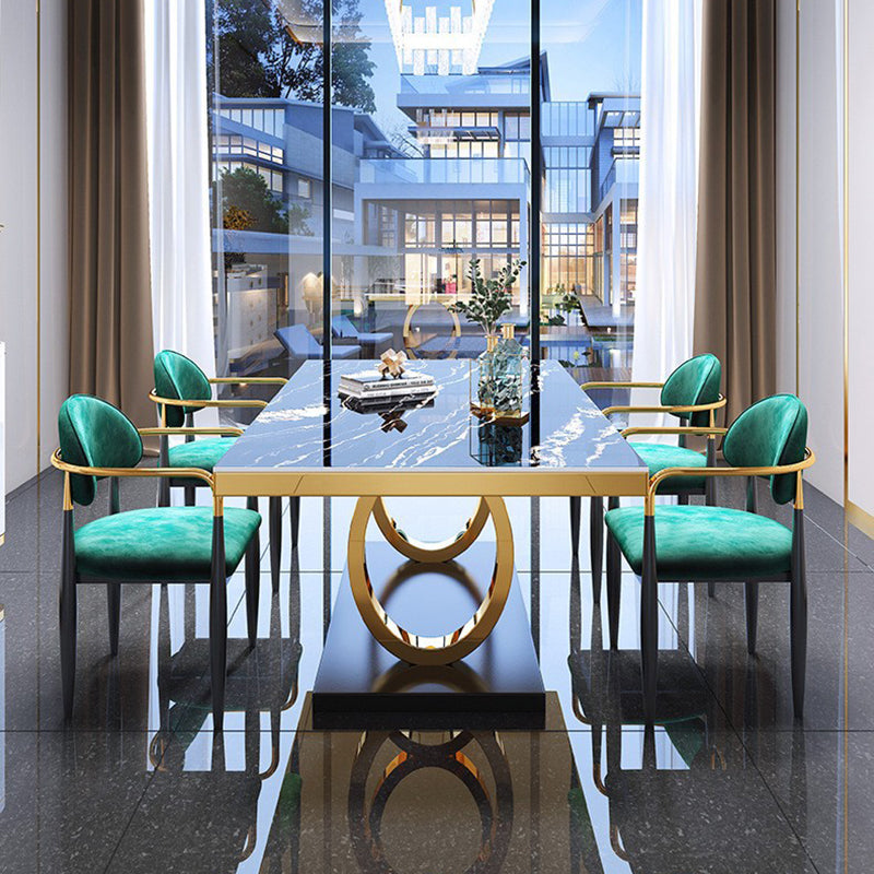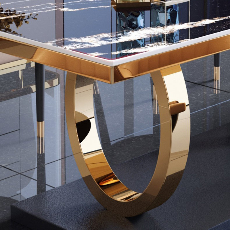 Modern Luxury Rectangular Artificial Marble Stainless Steel Dining Table 2-Leg For Dining Room
