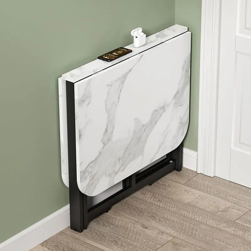 Modern Minimalist Rounded Rectangular Wrought Iron MDF Foldable Dining Table For 4/6 Seats