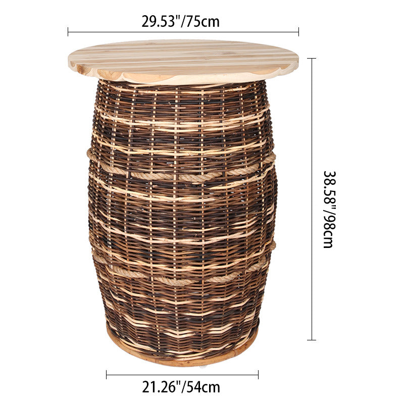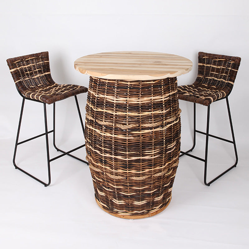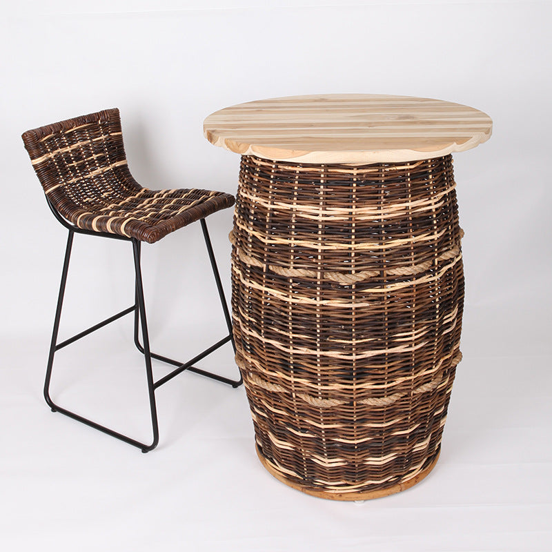 This rustic-style bar table features a premium teak top: naturally corrosion-resistant, termite-repellent, highly moisture, water-proof, and resistant to warping or cracking even with long-term outdoor use. Its legs are hand-woven from high-quality Indonesian rattan---light yet sturdy, breathable with excellent moisture, heat absorption, and won’t become brittle over time. The natural texture of teak and rattan turns every drink into a rustic, relaxed moment.
