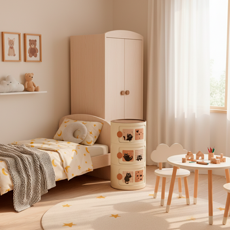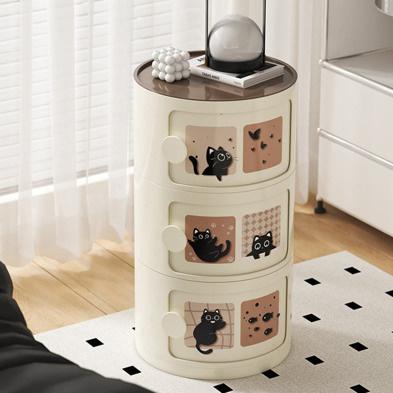 Contemporary Creative Cylindrical ABS Nightstand 2/3 Drawer For Bedroom