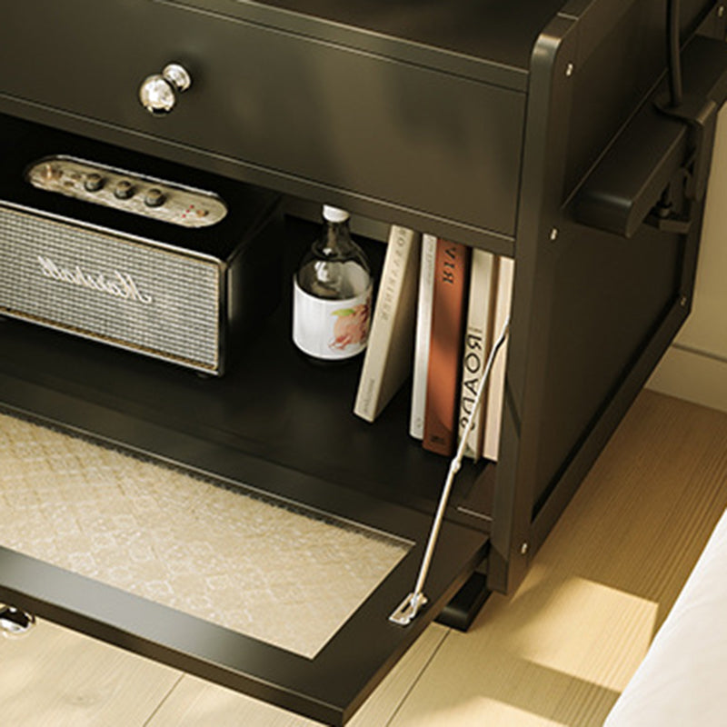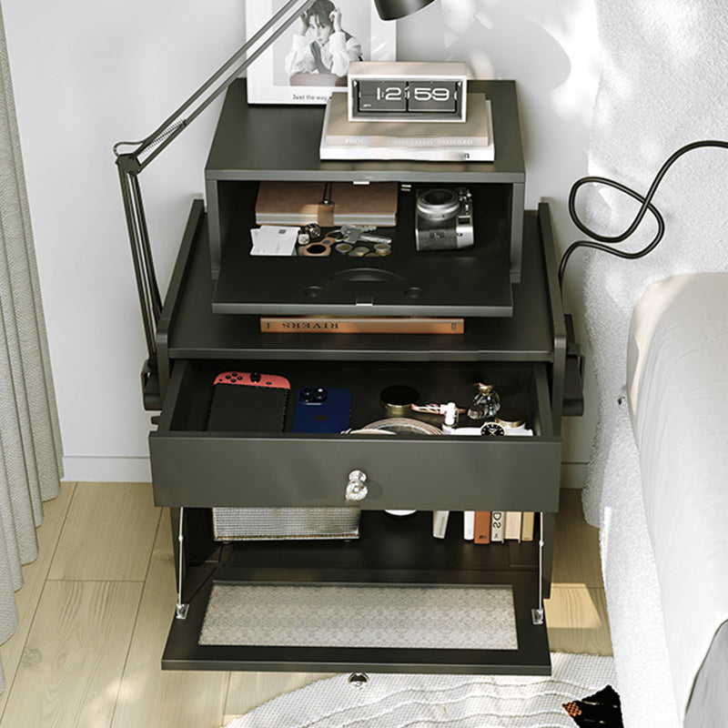 Table de nuit contemporaine nordique rectangulaire en bois avec plateau en acier inoxydable 1-cabinet pour chambre