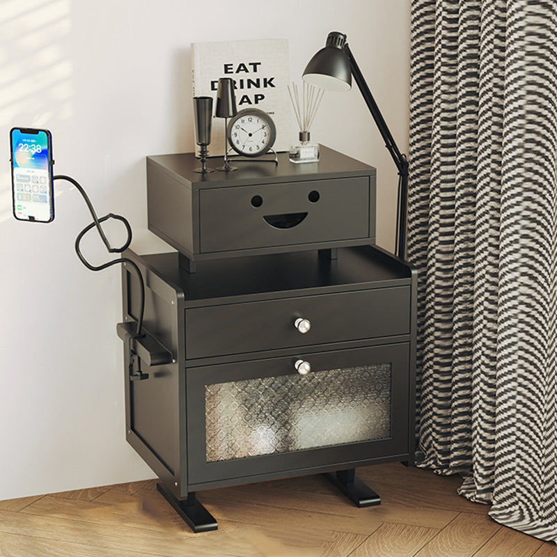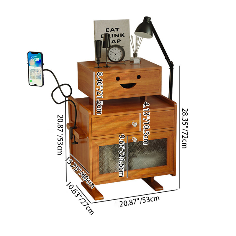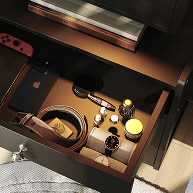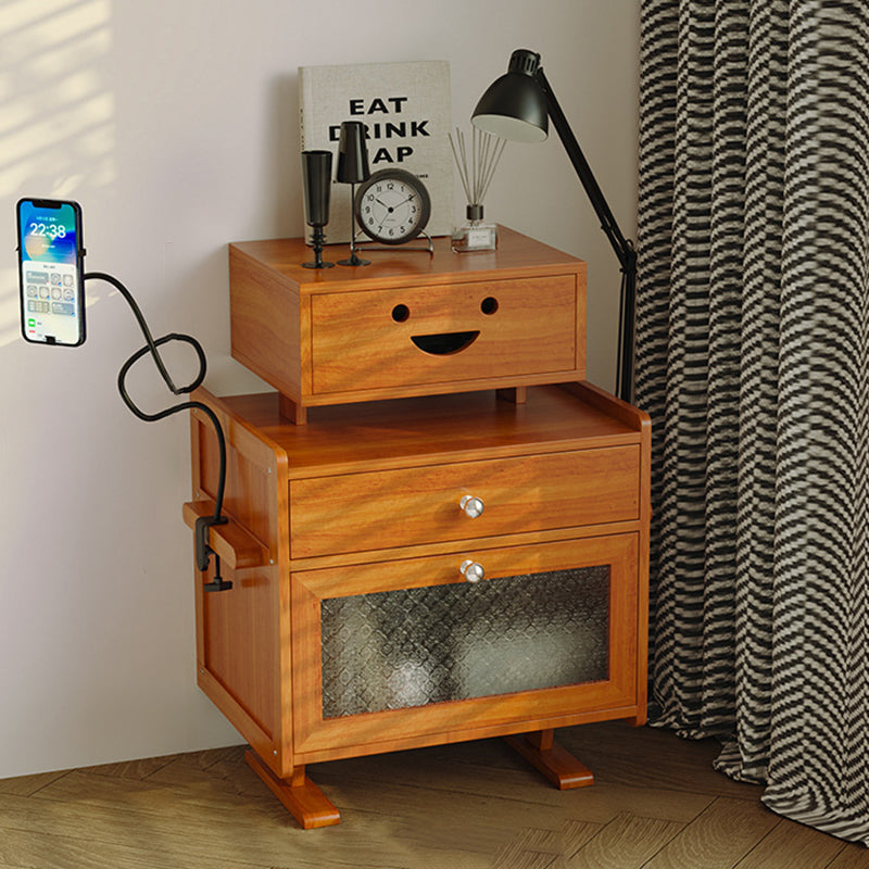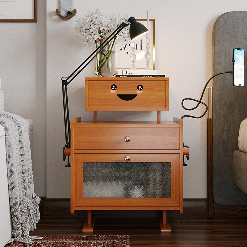 Contemporary Creative Rectangular Medium Density Fiberboard Acrylic Solid Wood Nightstand 1-Drawer For Bedroom