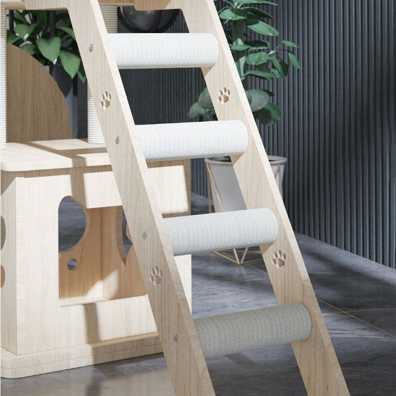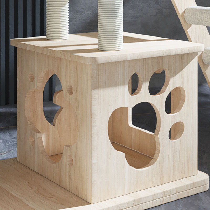 Contemporary Creative Rectangular Solid Pine Wood Acrylic Kraft Paper Rope Multi-Functional Cat Tree Multi-Level For Living Room