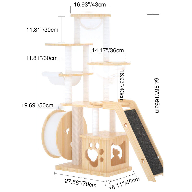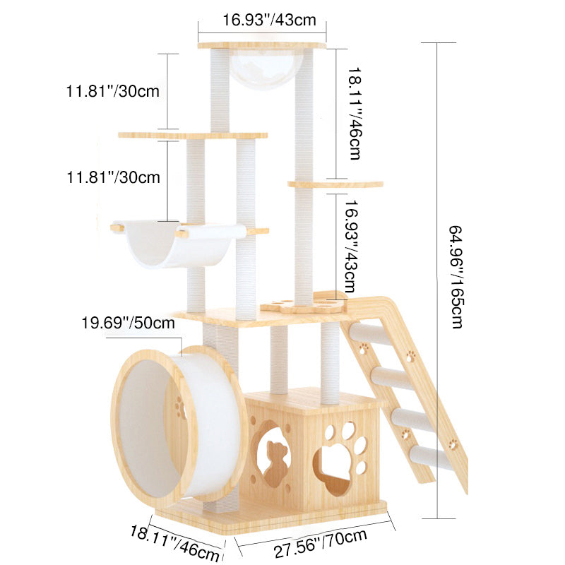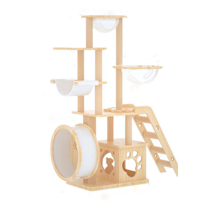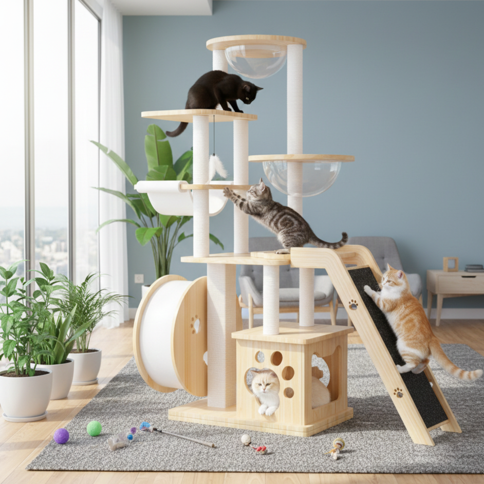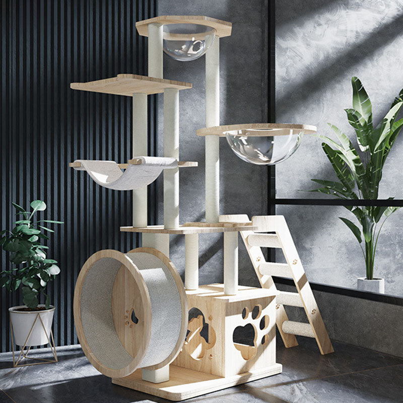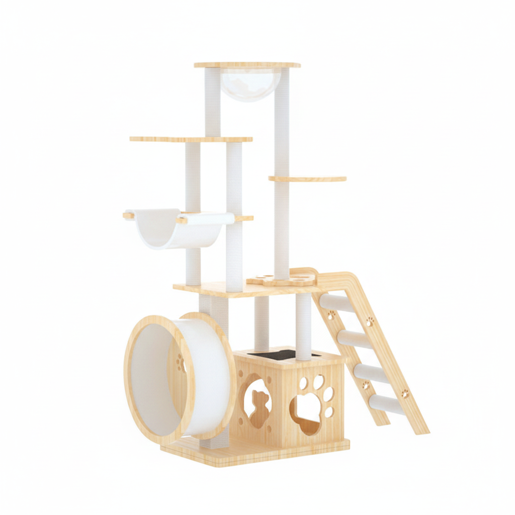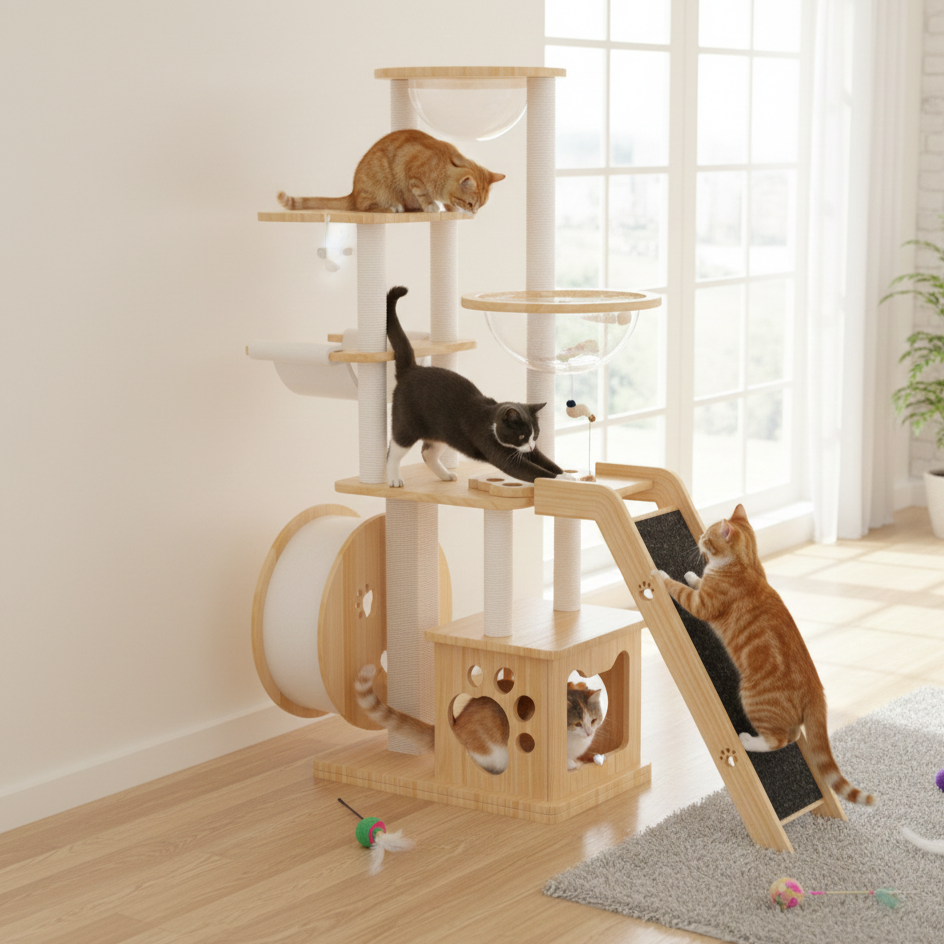 Engineered specifically for multi-cat households, this tower provides ample vertical space for both active climbing and tranquil lounging. Integrated sisal scratching posts throughout the structure cater to natural instincts, promoting paw health and protecting your furniture. This high-end piece is optimized for North American consumers searching for solid pine wood cat trees, multi-level pet furniture, acrylic cat pods, and stylish multi-cat solutions for contemporary living rooms and bedrooms.