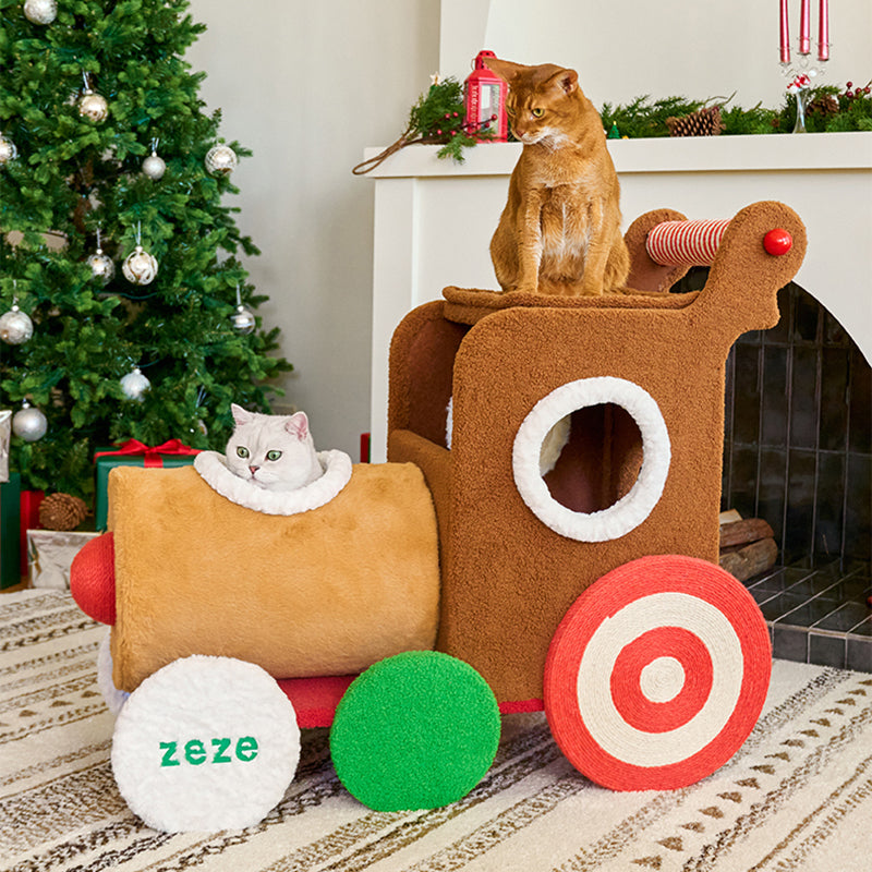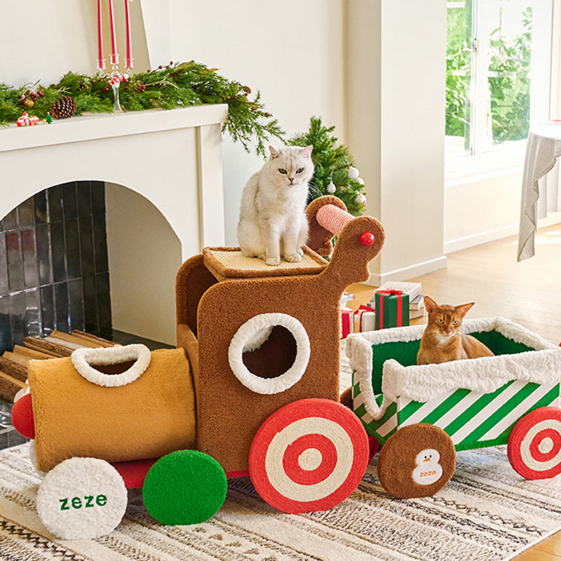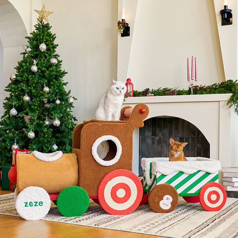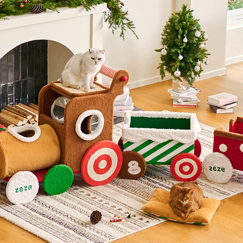 All aboard for festive fun with this creative Christmas-themed cat tree, designed as a whimsical, vibrant train. This eye-catching centerpiece is more than just holiday décor; it’s a high-performance habitat built from durable engineered wood and wrapped in soft, premium fabric. Perfectly tailored for multi-cat homes, the locomotive-inspired structure combines the magic of the season with year-round utility, ensuring your pets remain entertained, active, and cozy throughout the winter months.