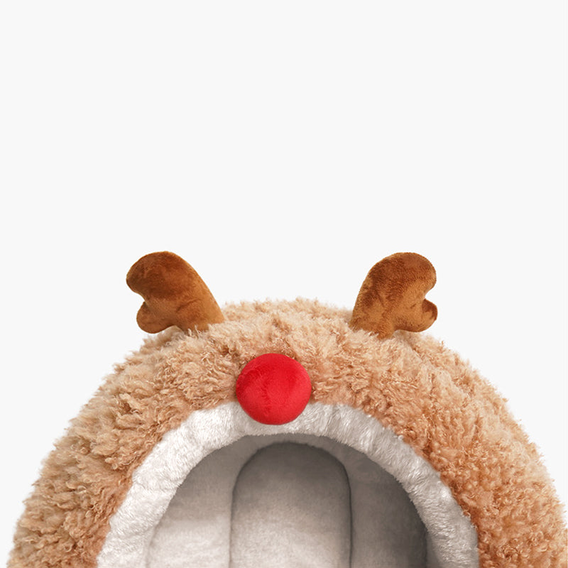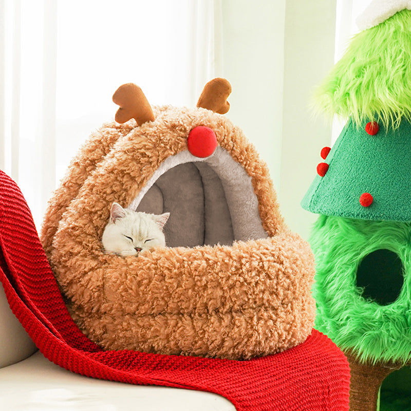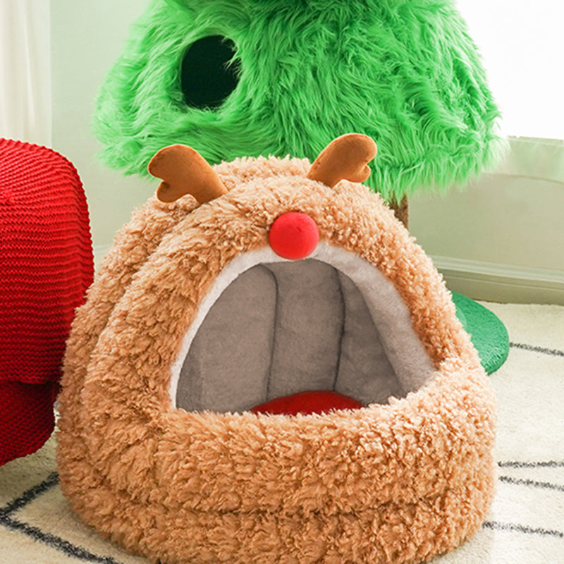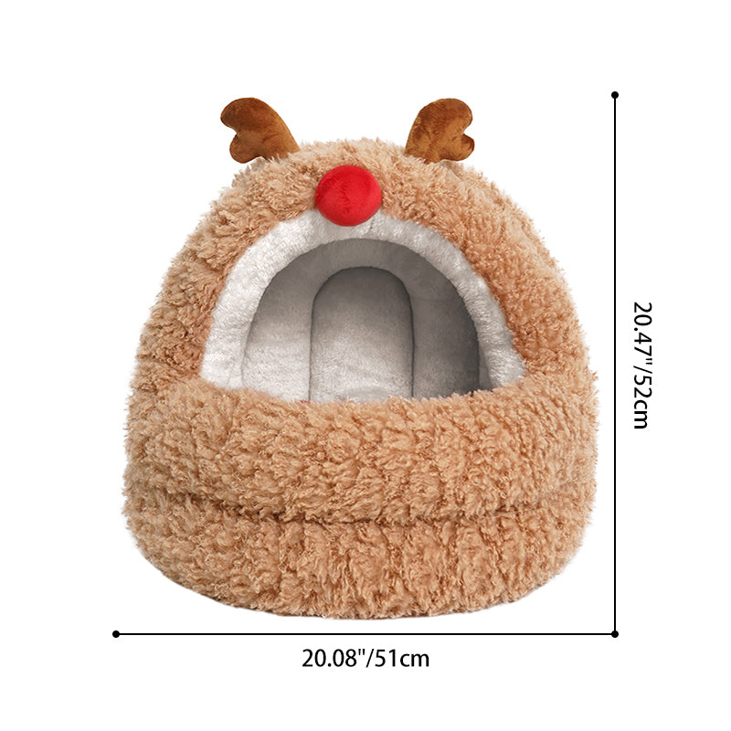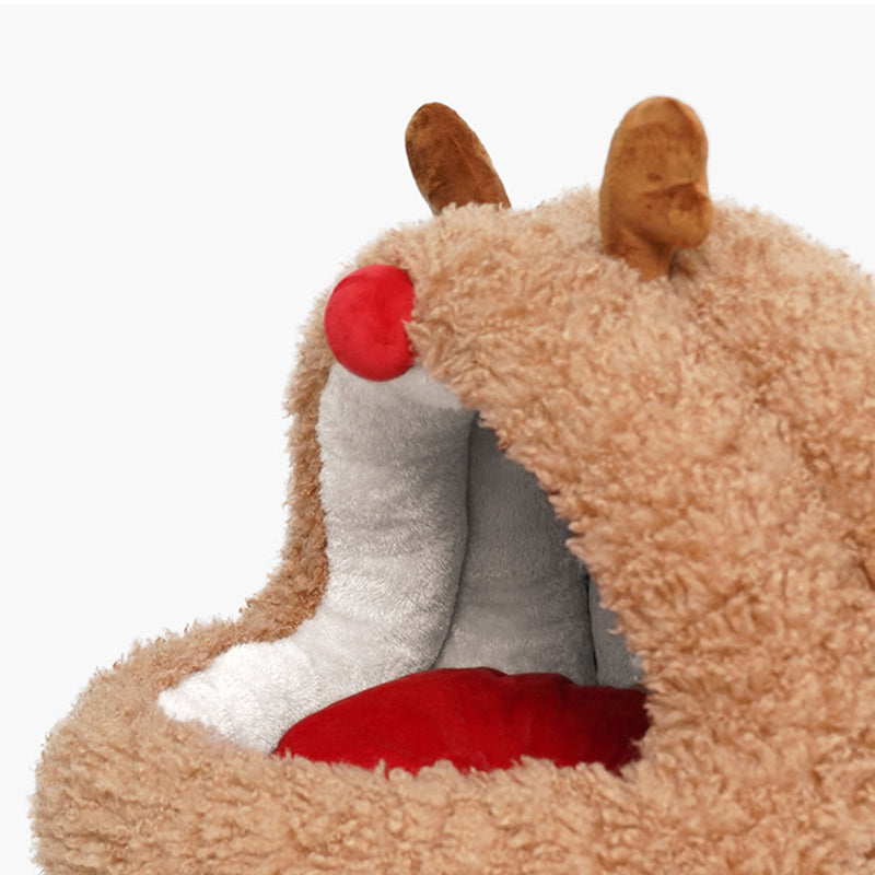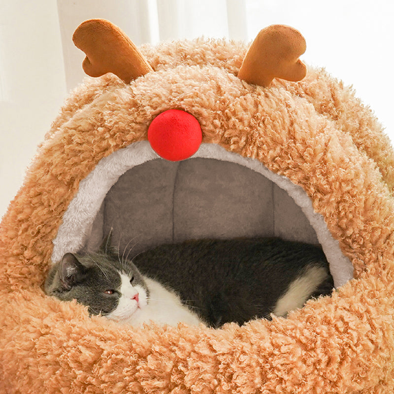 The clever semi-enclosed space is engineered to provide your cat or small dog with a high degree of comfort and a strong sense of security, mimicking a safe, warm winter hideaway. Its versatile, compact shape makes it an ideal, comfortable addition to any living room or bedroom. Optimized for North American consumers searching for reindeer pet beds, plush round cat houses, small dog cozy hideaways, and semi-enclosed warm winter pet furniture for contemporary homes.