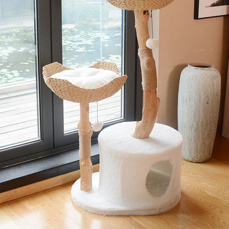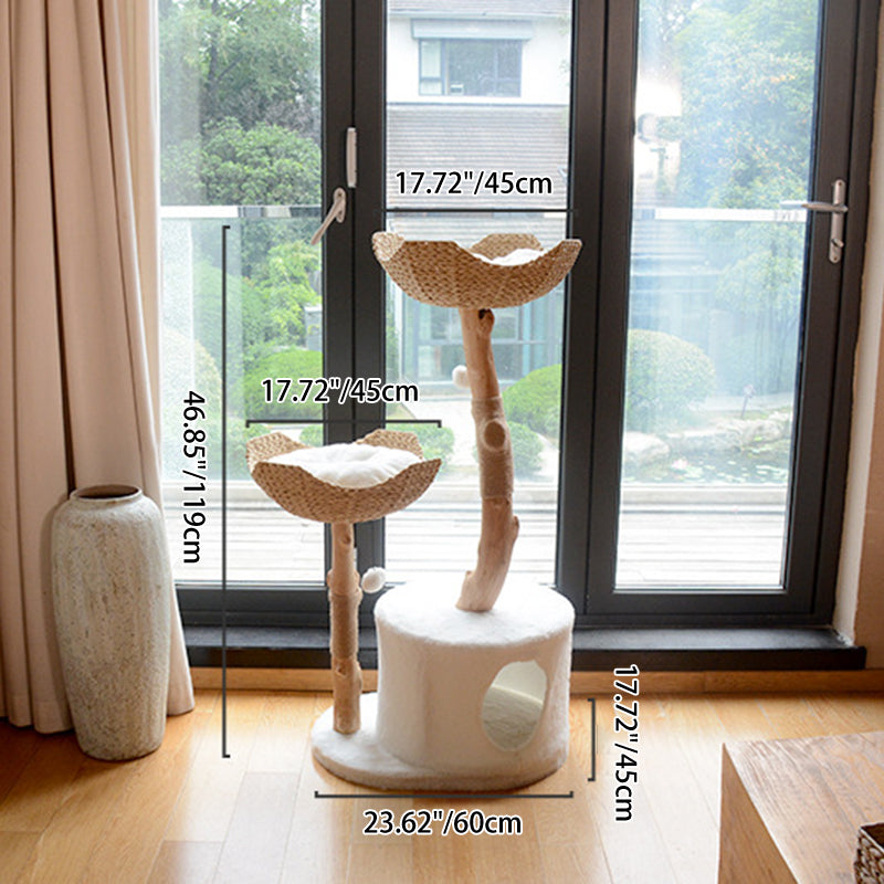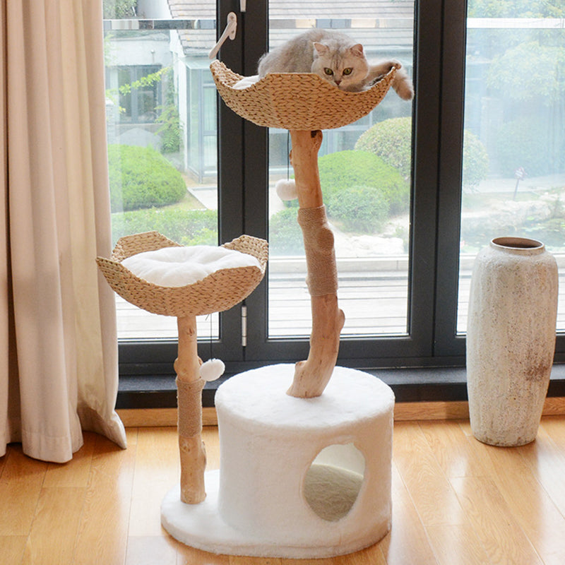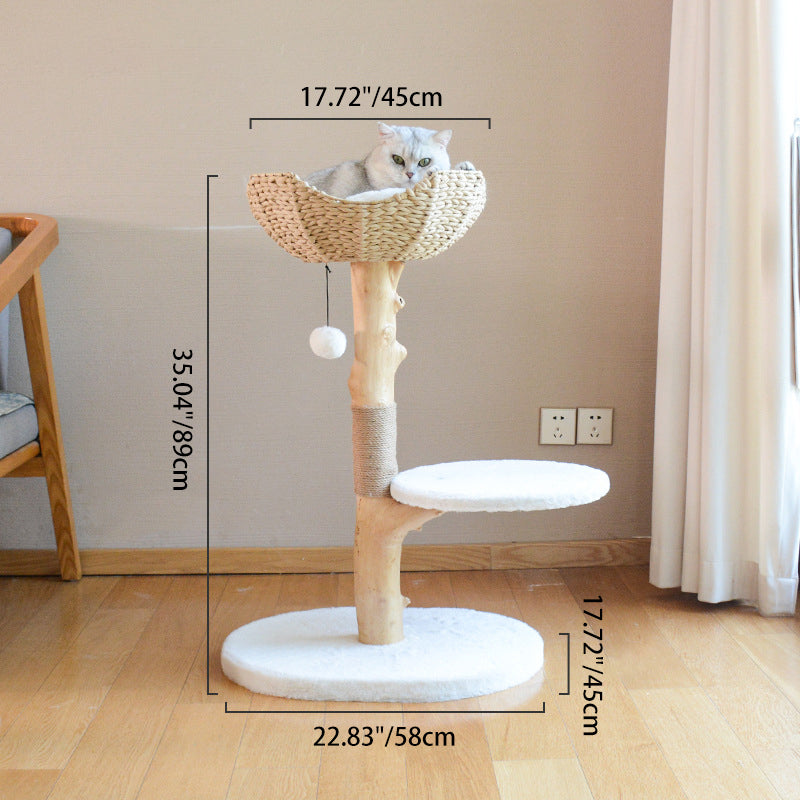 Thoughtfully engineered for multi-cat households, the expansive round multi-tier design offers generous space for several cats to lounge, climb, and sharpen their claws simultaneously. The minimalist natural wood-and-white color palette ensures this piece acts as a stylish accent, blending perfectly into your living room or bedroom décor. Optimized for North American homeowners seeking Nordic pet furniture, fruitwood cat trees, multi-level designer cat condos, and modern wood-and-white cat scratching posts that prioritize both aesthetics and feline enrichment.