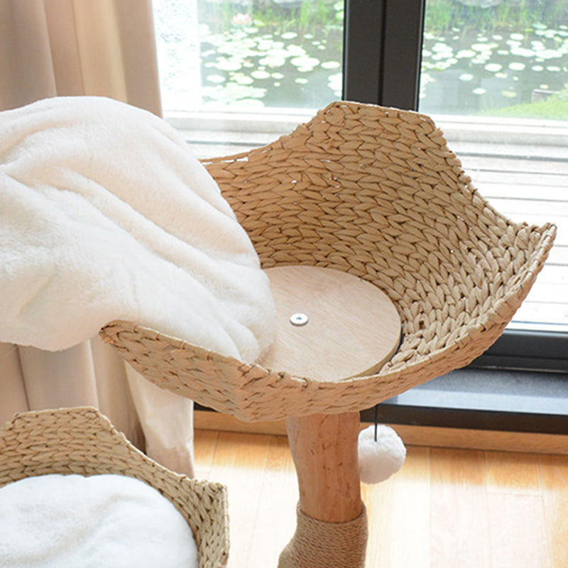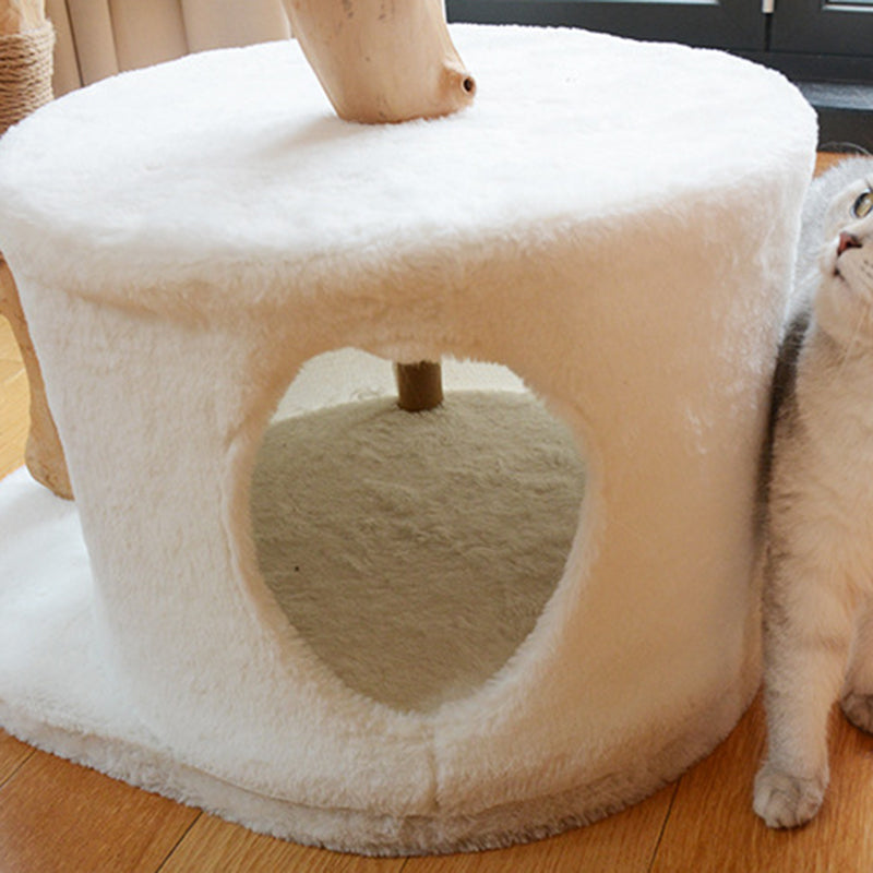 Contemporary Scandinavian Round Natural Fruitwood Particle Board Sisal Velvet Fabric Multi-Functional Cat Tree For Bedroom