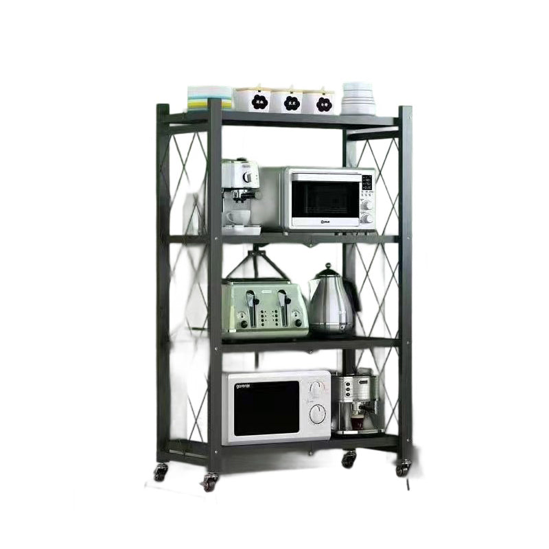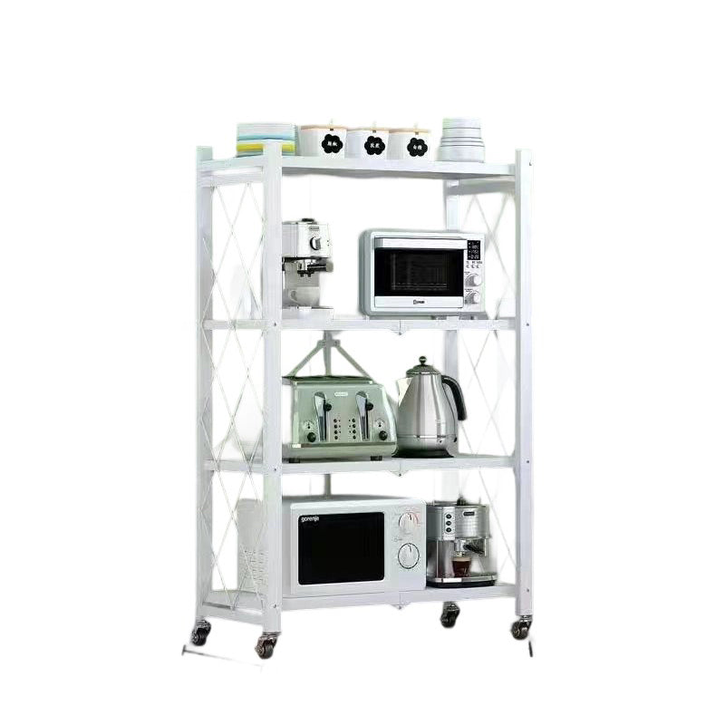 This modern minimalist storage rack is made of durable carbon steel with a hollow rectangular design for better ventilation. Available in black or white, it features 3/4/5 shelves, smooth mobility, and an easy foldable structure for practical and stylish living room storage.