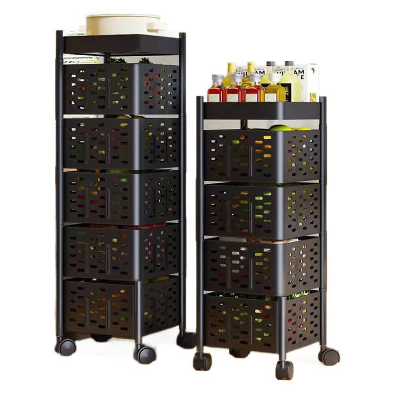 Crafted from sturdy carbon steel, this modern minimalist storage rack features a movable square hollow design with 3/4/5 shelves. Available in black or white, it offers strong load-bearing capacity, breathable mesh sides, and easy mobility for organized living room storage.