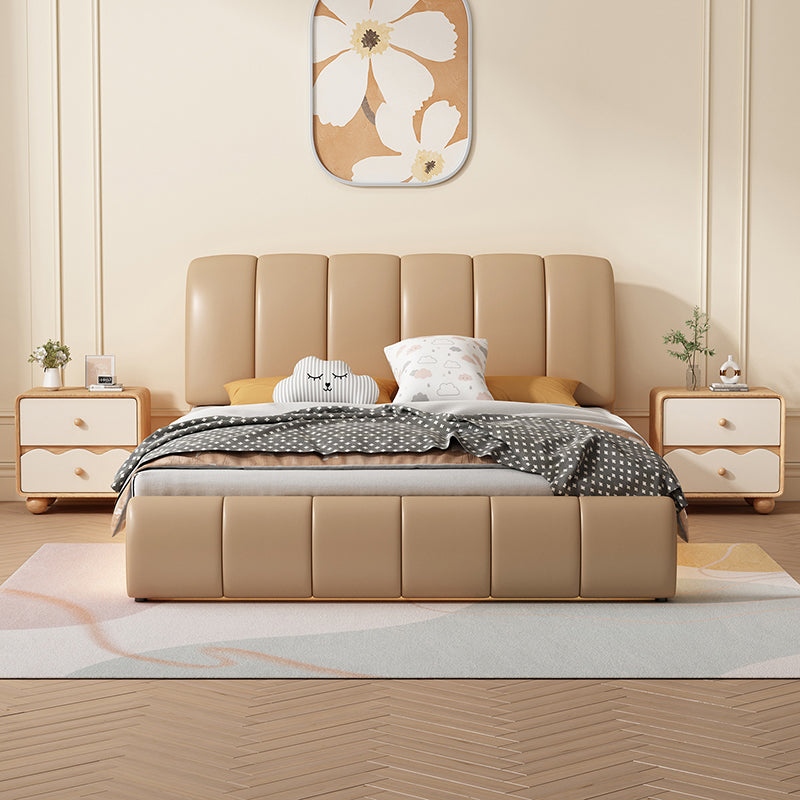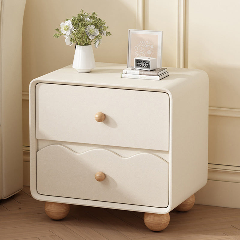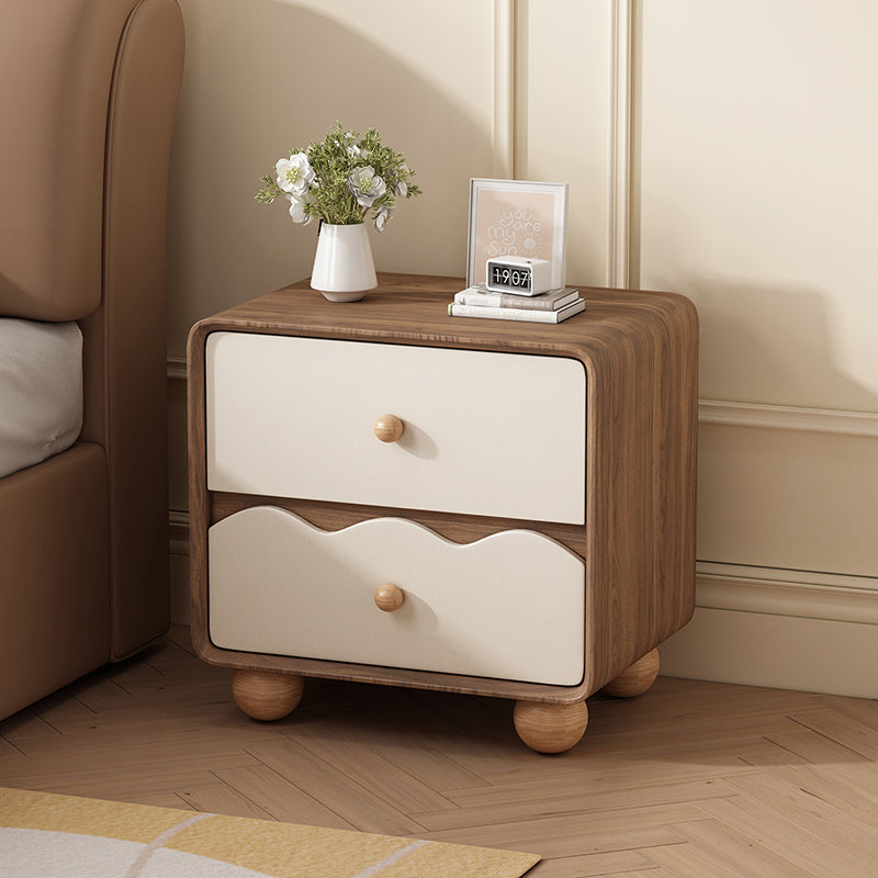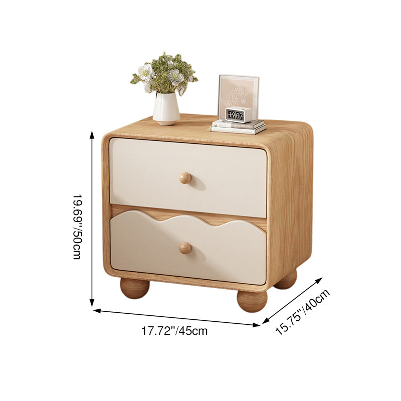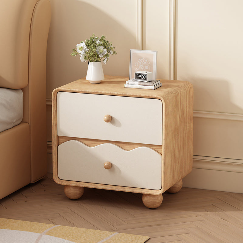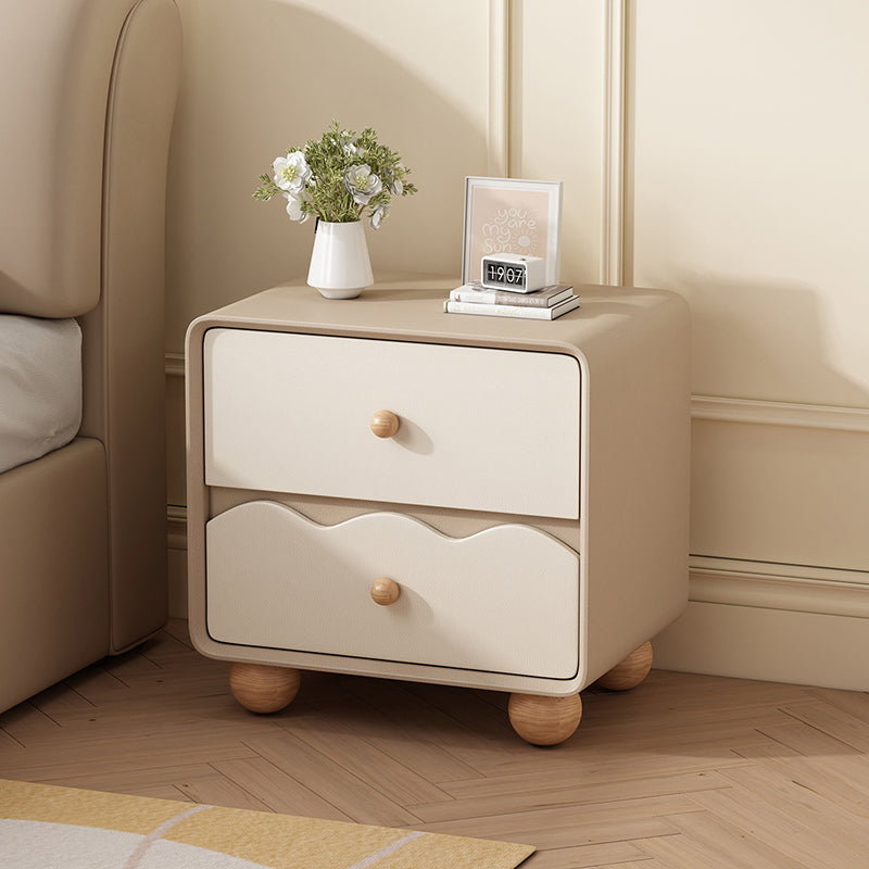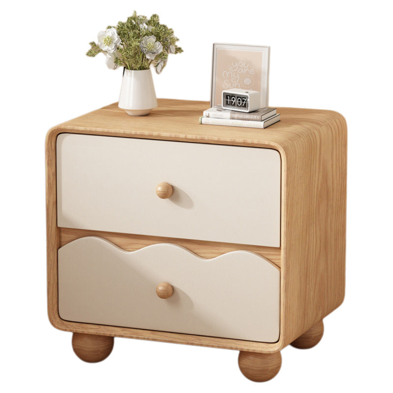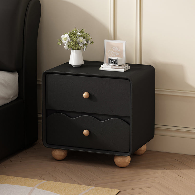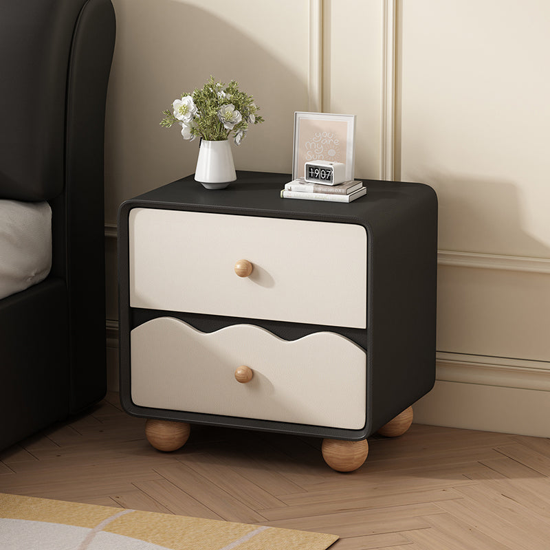 Modern Minimalist Rectangular Cat-Scratch-Resistant Leather Solid Wood Nightstand 2-Drawer For Bedroom