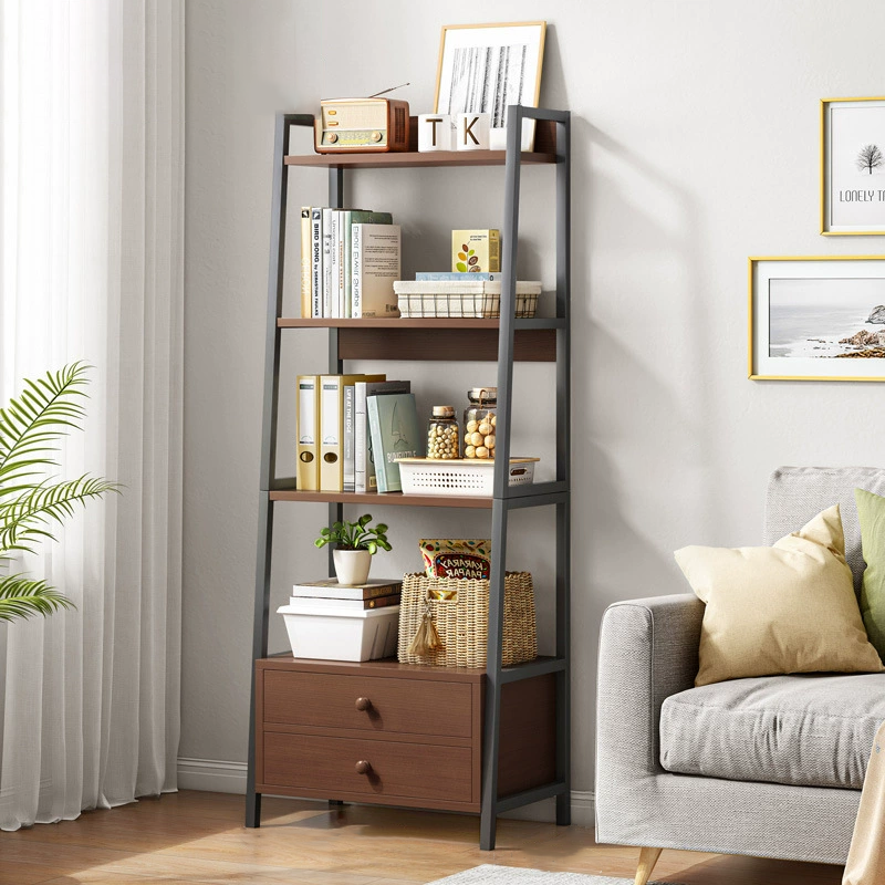 Modern Minimalist Rectangular MDF Steel Bookshelf 4-Tier For Living Room