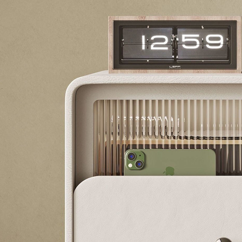 Modern Minimalist Square Microfiber Leather Medium Density Fiberboard Glass Stainless Steel Nightstand 1-Drawer For Bedroom