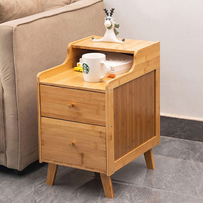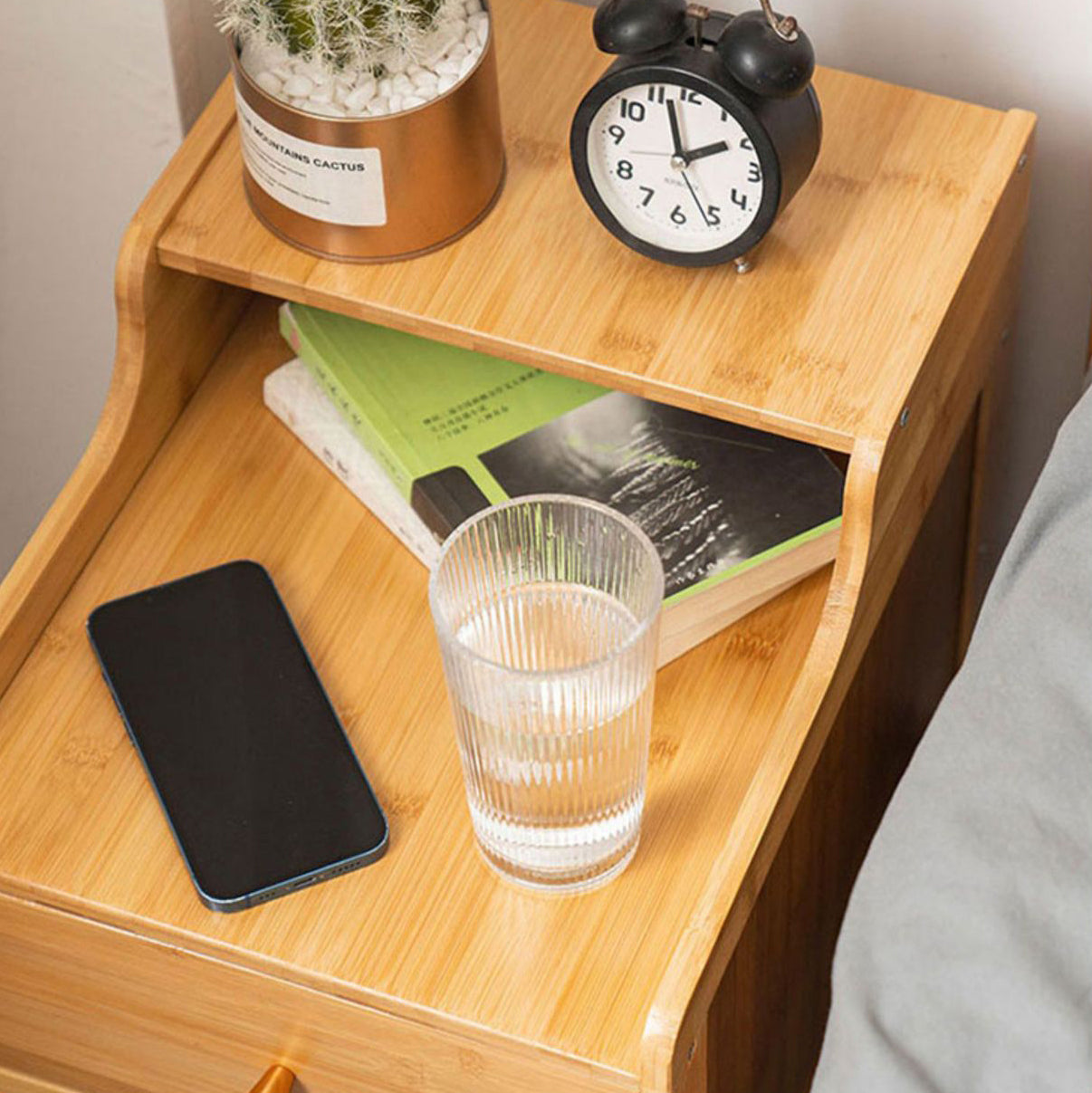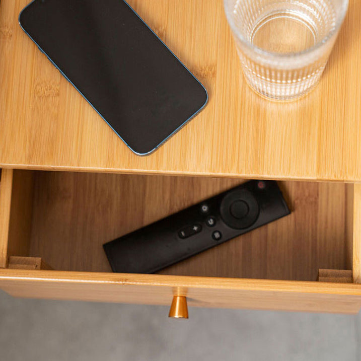 Crafted from natural bamboo and solid wood, this traditional Chinese nightstand features a square silhouette with soft curves and a rich walnut or natural wood finish. Two smooth drawers and semi-open storage provide durable, practical organization, perfect for adding warm character and functionality to modern or rental bedrooms.