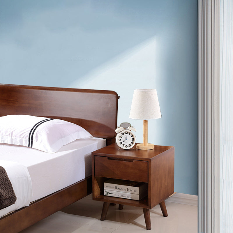 Traditional Chinese Rubberwood Square Angled-Leg Nightstand 1-Drawer For Bedroom