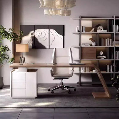 Modern Minimalist Trapezoidal Solid Wood Plywood Desks 3-Drawer For Home Office