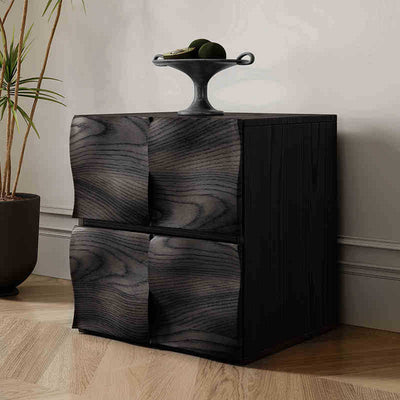 Contemporary Scandinavian Square Solid Oak Wooden Nightstand With 2-Drawer For Bedroom