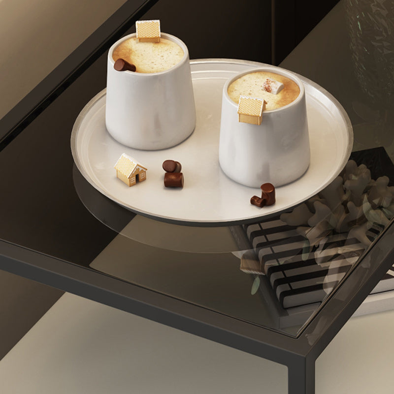Contemporary Scandinavian Tempered Glass Carbon Steel MDF Rectangular Side Table 3-Tier For Living Room