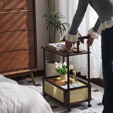 This traditional Chinese-style side table blends medium-density fiberboard, natural nan bamboo, and woven rattan for a warm vintage feel. The 1-tier cylindrical rectangular frame features smooth rounded edges, ergonomic handles, and lockable swivel casters, offering secure mobility and convenient storage for magazines, plants, or household essentials in your living room.