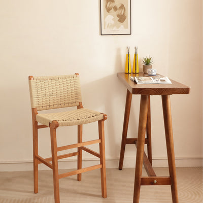 Contemporary Scandinavian Square Ash Wood Solid Wood Plywood Indonesian Rattan Backrest Bar Stool For Kitchen