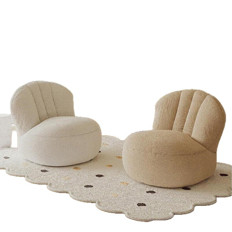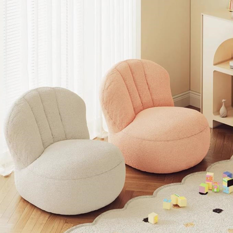 Contemporary Nordic Curved Lambswool Cotton-Linen EPS Particles Accent Chair Backrest Armless For Living Room