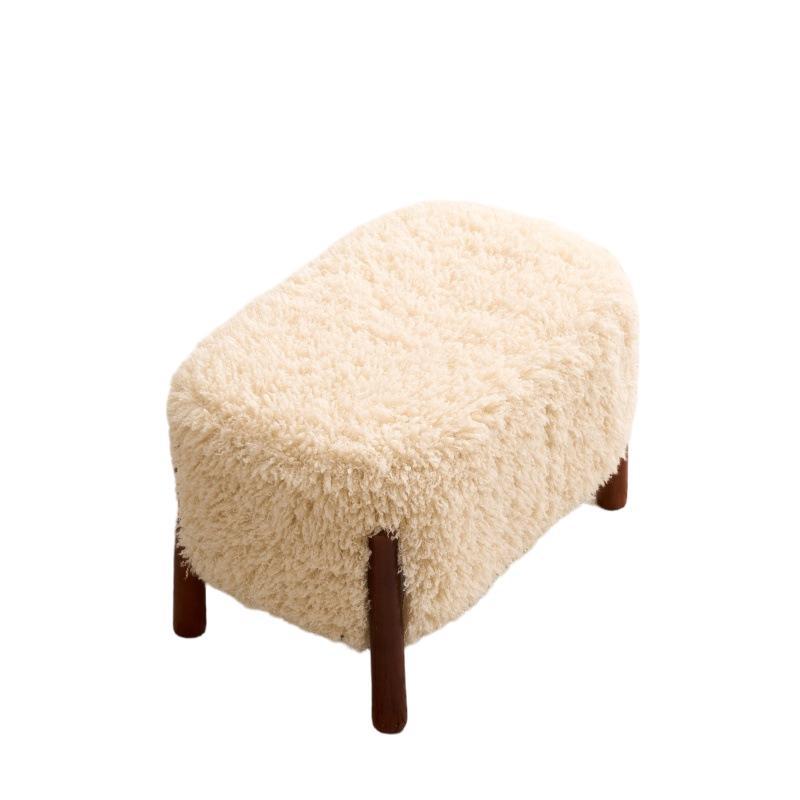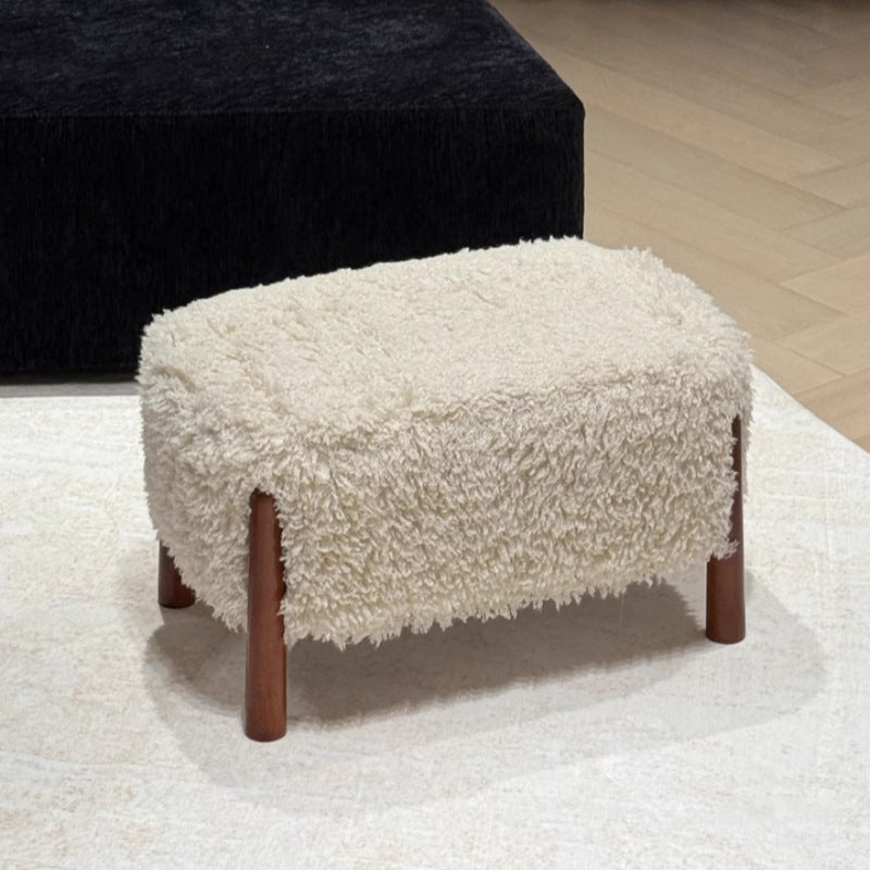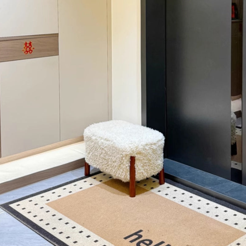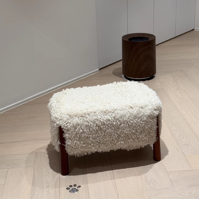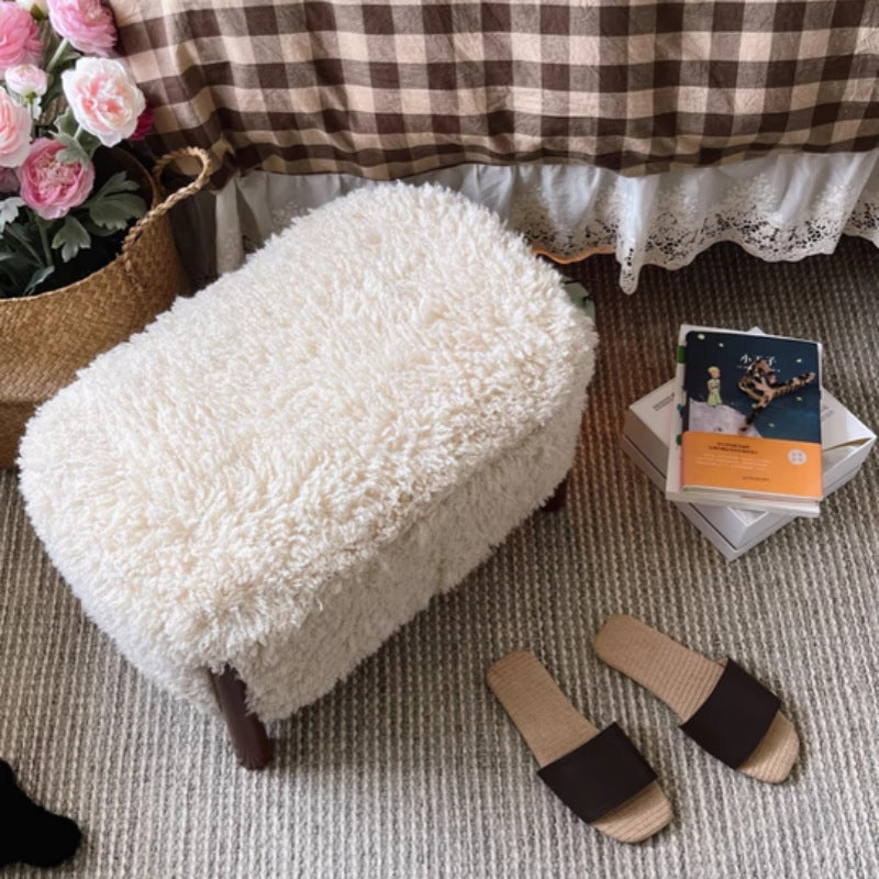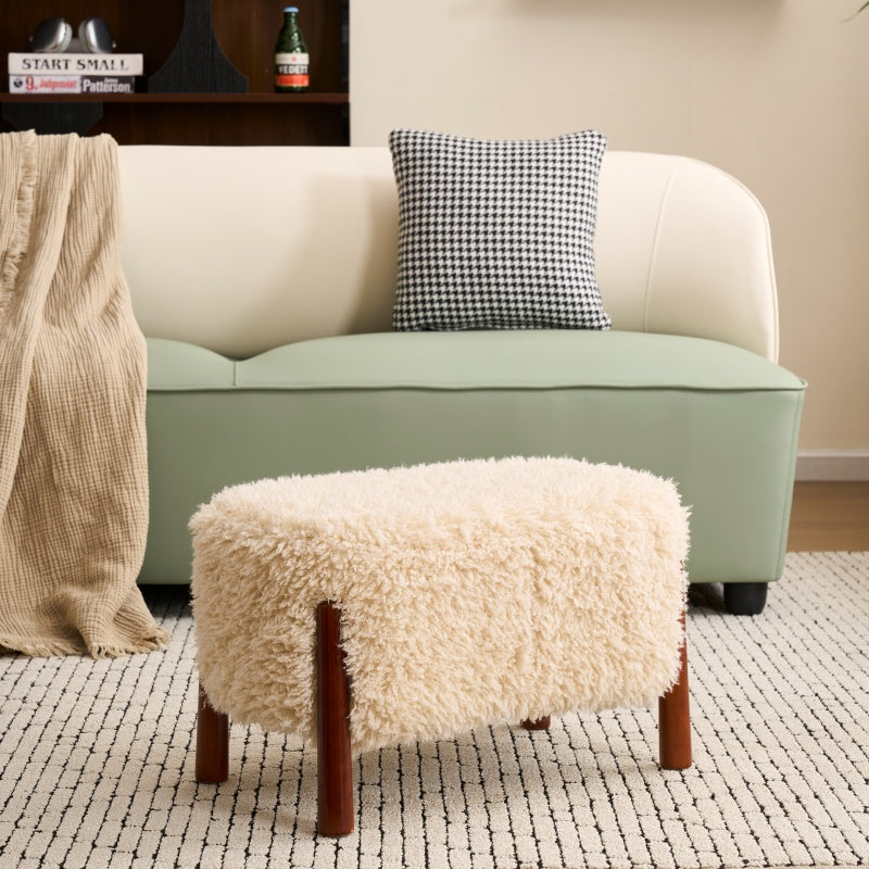 This Scandinavian rectangular stool features a soft shearling surface, solid wood base, and high-elastic foam, offering a stable and comfortable seating experience. The compact beige design is perfect for living rooms, entryways, or shoe-changing areas, providing easy, flexible seating without taking up space.