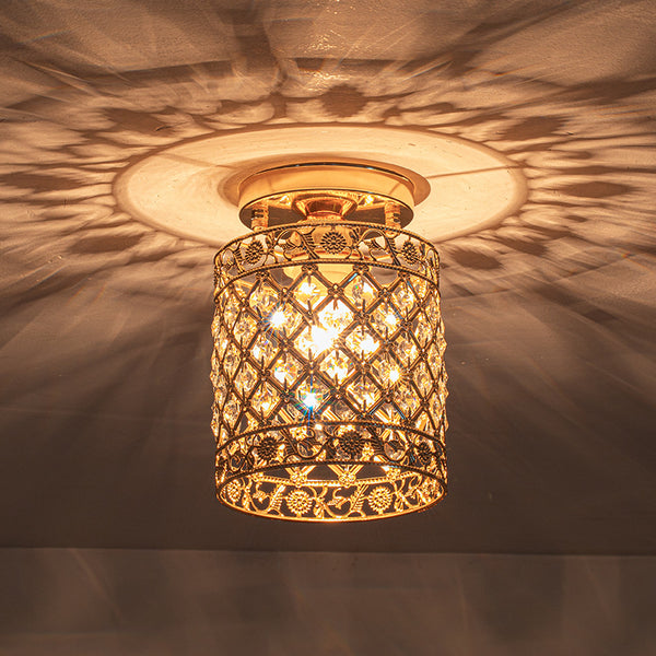 Plafonnier à 1 lumière de forme cylindrique mini en cristal moderne