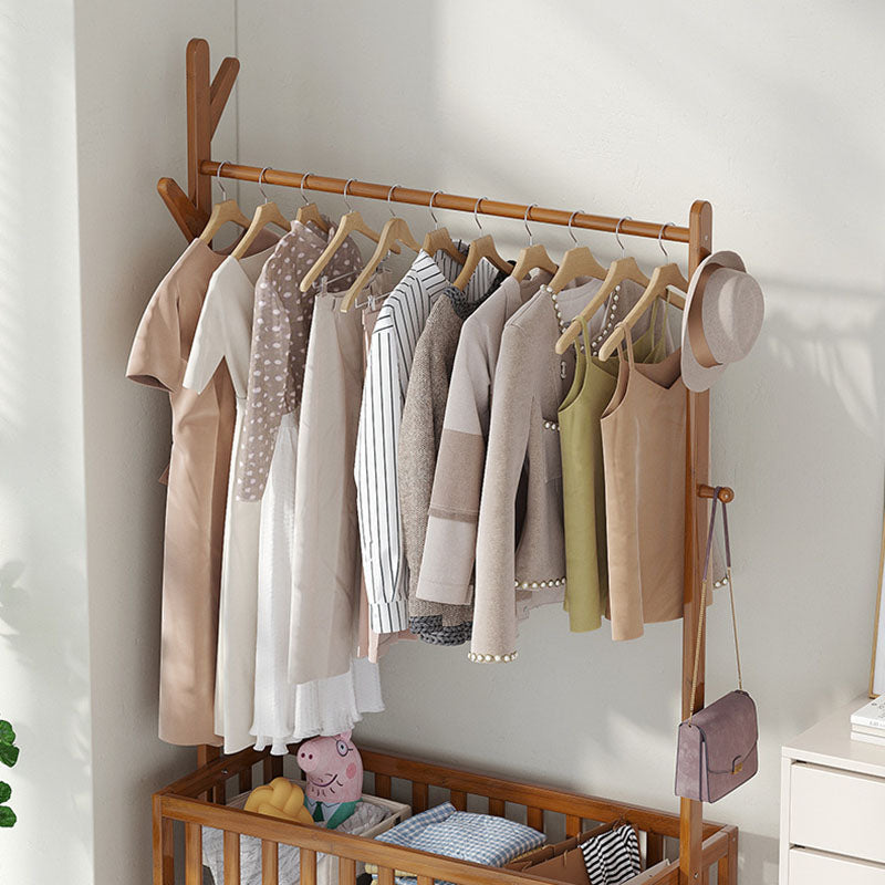 Achieve a clean, contemporary look with this modern minimalist clothing rack, crafted entirely from durable natural bamboo. The design prioritizes simplicity and safety, featuring a streamlined silhouette with smooth rounded edges. This piece offers excellent organizational utility, including a generous hanging rail for garments and a seamlessly integrated built-in storage basket for bags and accessories.