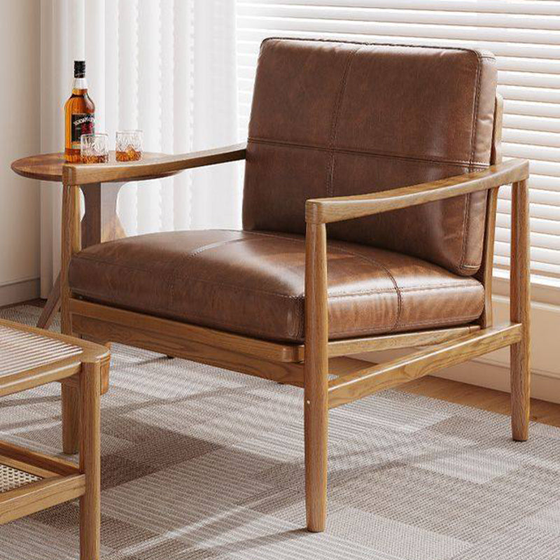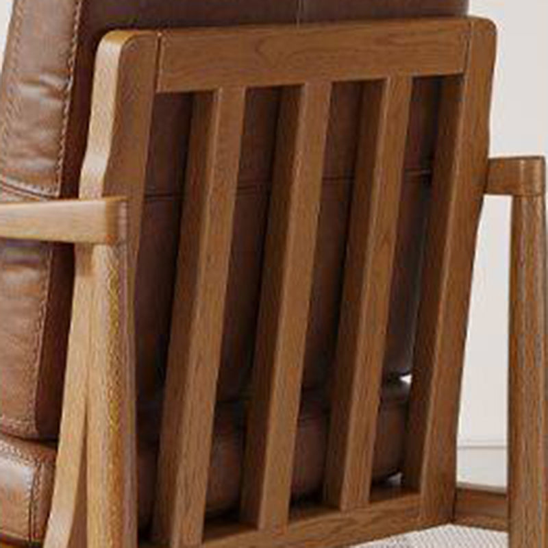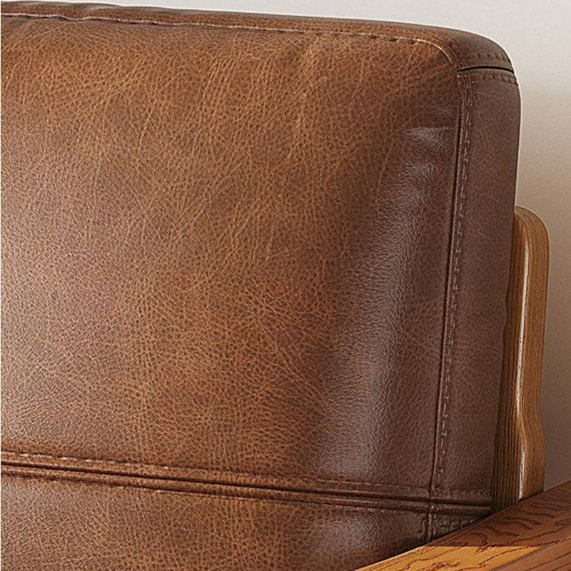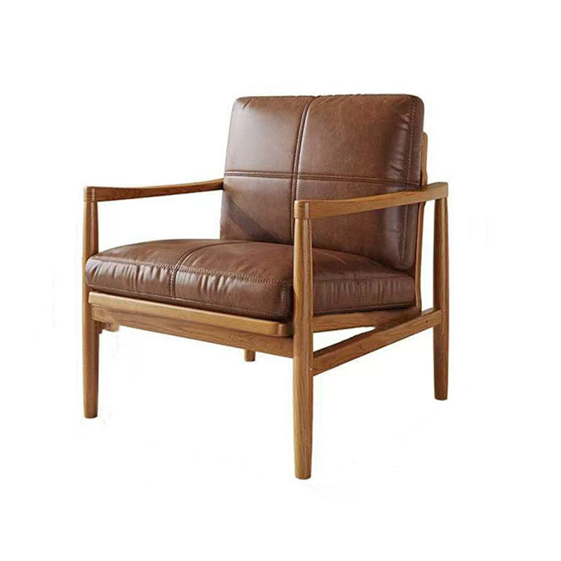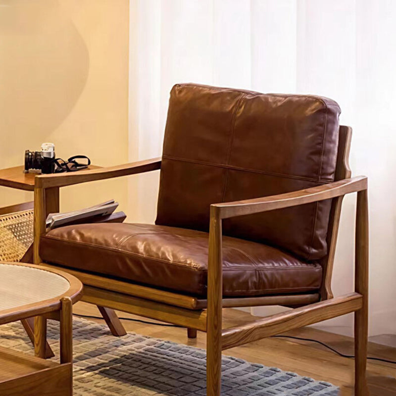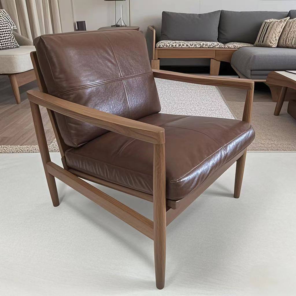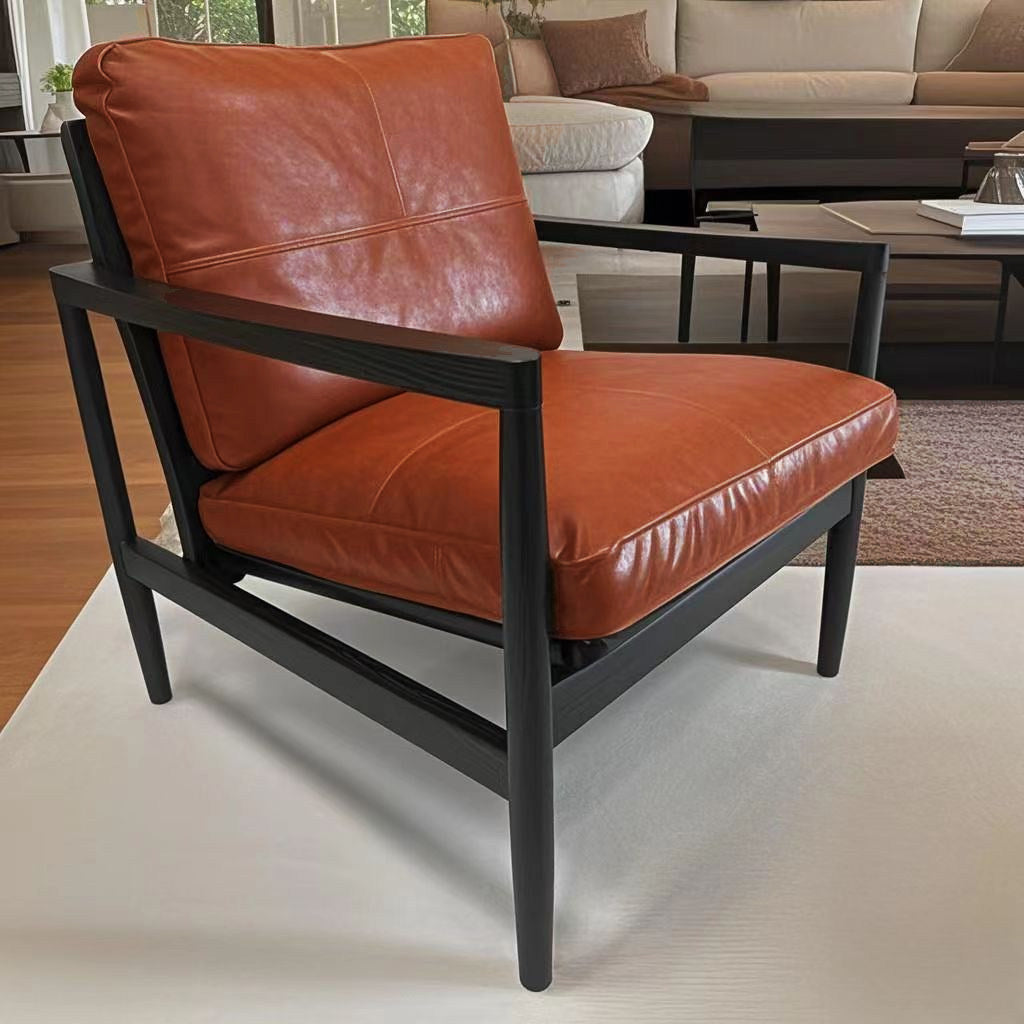 Fusing Nordic minimalism with a vintage sensibility, this genuine leather armchair is designed to bring both character and comfort to any interior. The piece features a supportive backrest and integrated armrests, all finished in a premium oil-waxed leather that gains beauty with age. Its foundation is a sturdy solid rubber wood frame, while the interior is packed with plush doll cotton filling for a soft, sink-in seating experience that lasts.